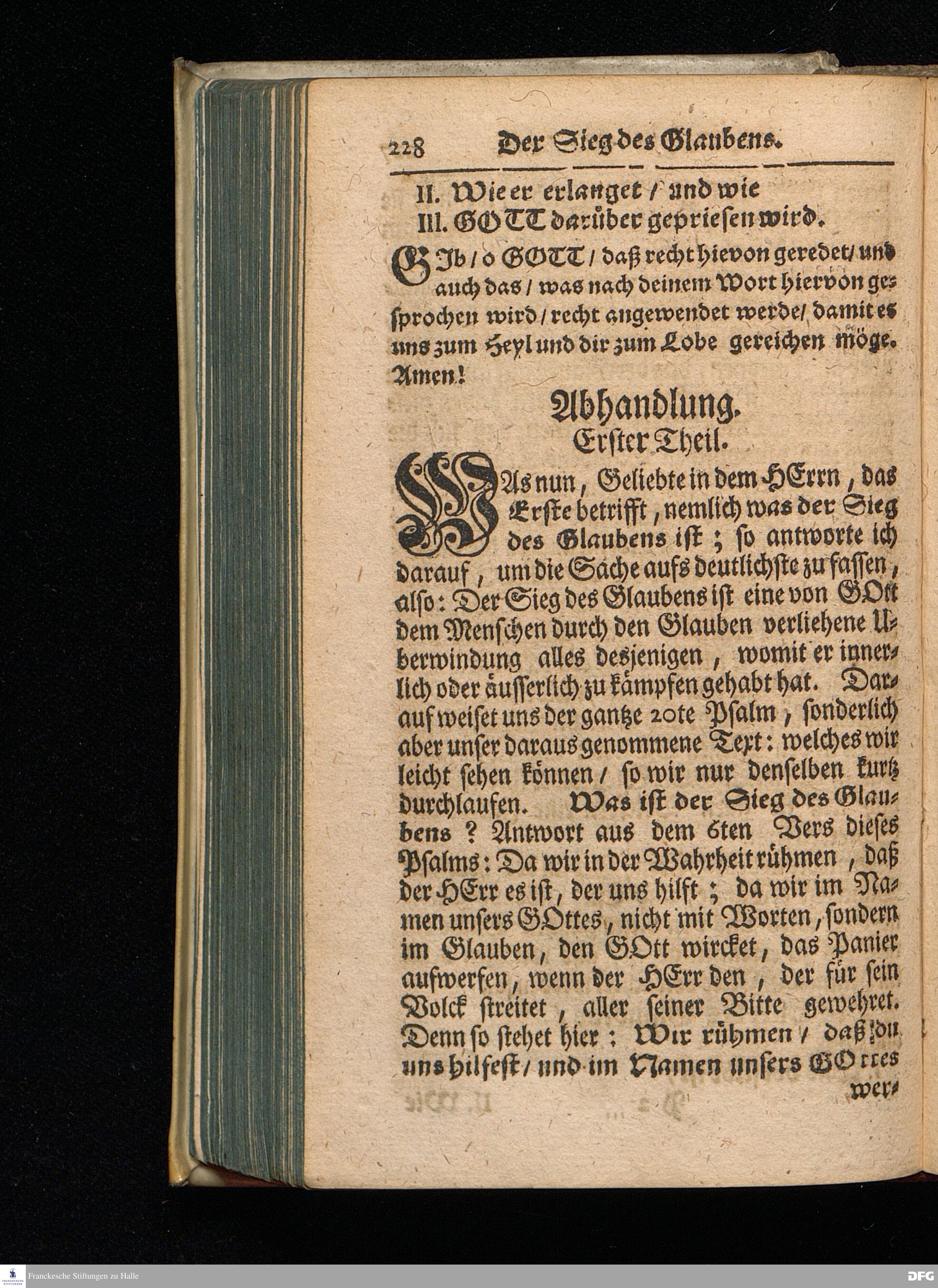 August Hermann Franckens / S.Theol.Prof.& Past. zu S.Ulrich, und des Gymnasii Scholarchæ, Kurtze Sonn= und Fest=Tags=Predigten / Darinnen Vornemlich zum wahren / lebendigen / Kraft=vollen und in guten Früchten sich beweisenden Glauben, die nöthige Aufweckung und Anweisung gegeben wird. Die andere EDITION, mit einer neuen Vorrede und einem Register versehen. HALLE, in Verlegung des Wäysen=Hause MDCCXVIII.