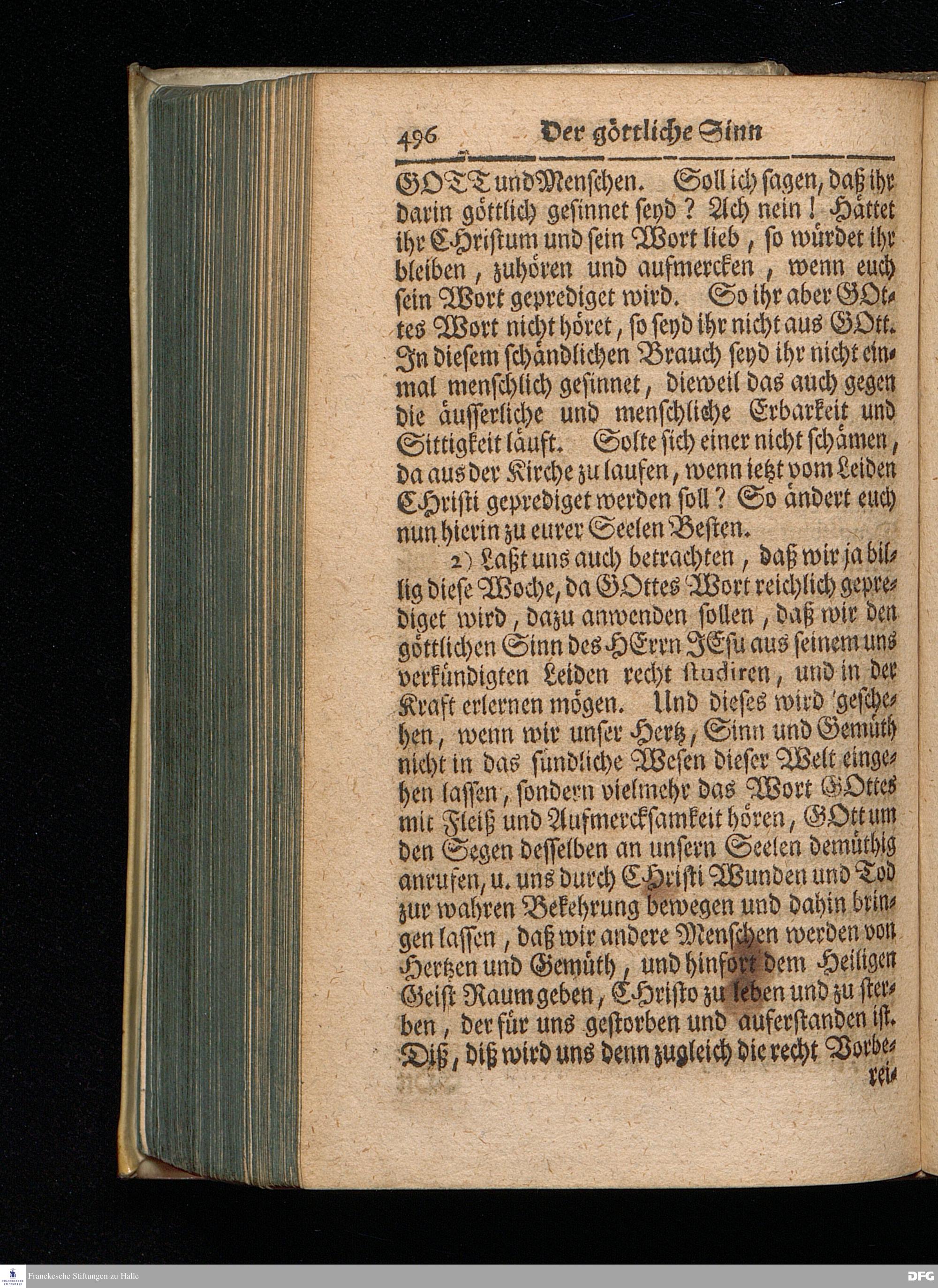 August Hermann Franckens / S.Theol.Prof.& Past. zu S.Ulrich, und des Gymnasii Scholarchæ, Kurtze Sonn= und Fest=Tags=Predigten / Darinnen Vornemlich zum wahren / lebendigen / Kraft=vollen und in guten Früchten sich beweisenden Glauben, die nöthige Aufweckung und Anweisung gegeben wird. Die andere EDITION, mit einer neuen Vorrede und einem Register versehen. HALLE, in Verlegung des Wäysen=Hause MDCCXVIII.