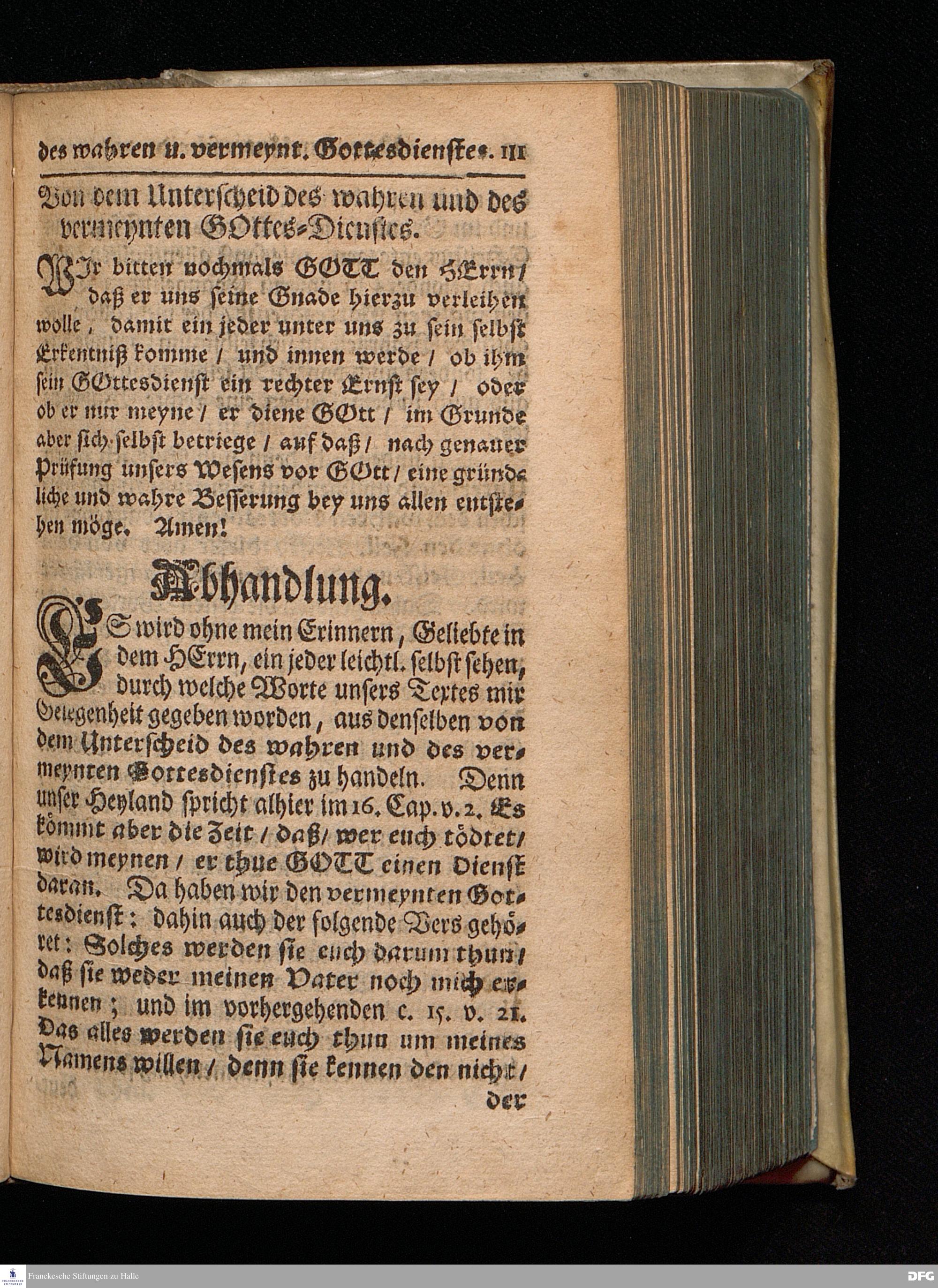 August Hermann Franckens / S.Theol.Prof.& Past. zu S.Ulrich, und des Gymnasii Scholarchæ, Kurtze Sonn= und Fest=Tags=Predigten / Darinnen Vornemlich zum wahren / lebendigen / Kraft=vollen und in guten Früchten sich beweisenden Glauben, die nöthige Aufweckung und Anweisung gegeben wird. Die andere EDITION, mit einer neuen Vorrede und einem Register versehen. HALLE, in Verlegung des Wäysen=Hause MDCCXVIII.