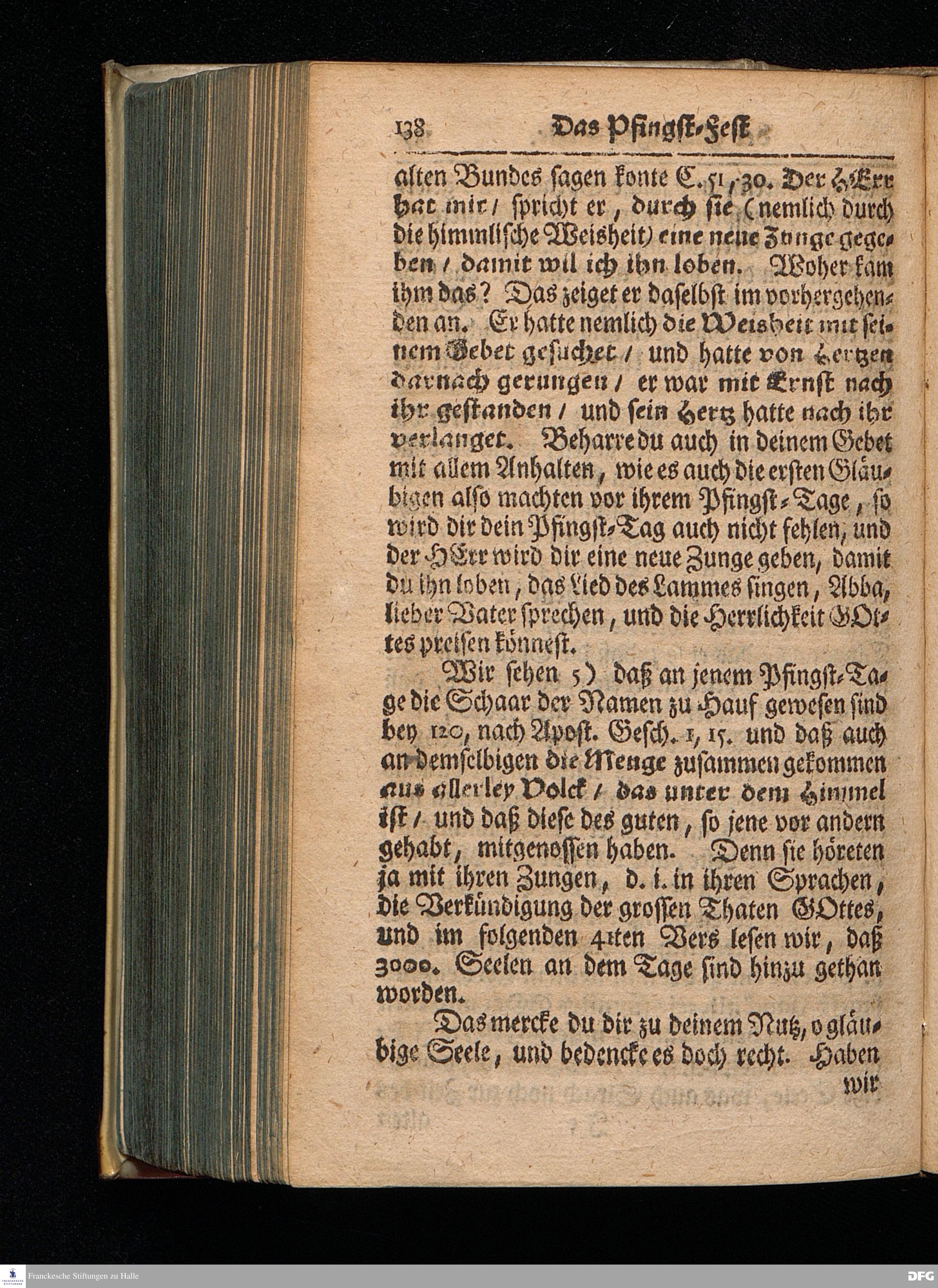 August Hermann Franckens / S.Theol.Prof.& Past. zu S.Ulrich, und des Gymnasii Scholarchæ, Kurtze Sonn= und Fest=Tags=Predigten / Darinnen Vornemlich zum wahren / lebendigen / Kraft=vollen und in guten Früchten sich beweisenden Glauben, die nöthige Aufweckung und Anweisung gegeben wird. Die andere EDITION, mit einer neuen Vorrede und einem Register versehen. HALLE, in Verlegung des Wäysen=Hause MDCCXVIII.
