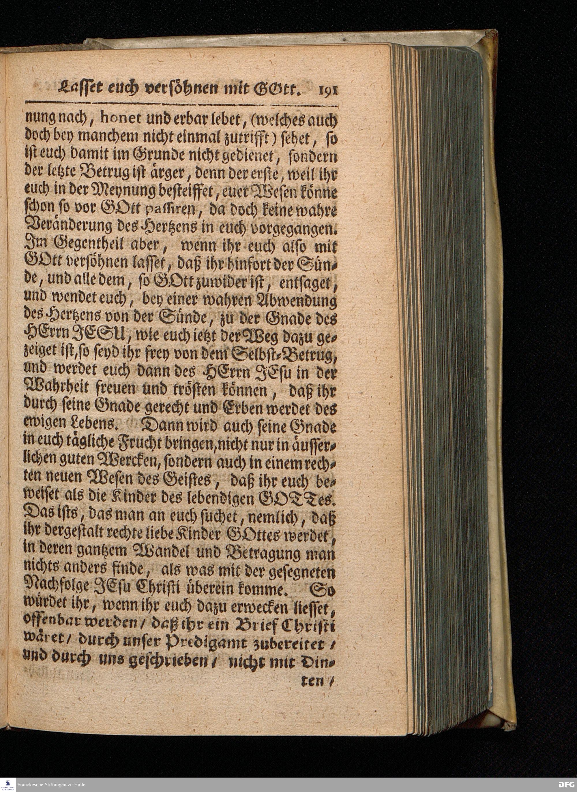 August Hermann Franckens / S.Theol.Prof.& Past. zu S.Ulrich, und des Gymnasii Scholarchæ, Kurtze Sonn= und Fest=Tags=Predigten / Darinnen Vornemlich zum wahren / lebendigen / Kraft=vollen und in guten Früchten sich beweisenden Glauben, die nöthige Aufweckung und Anweisung gegeben wird. Die andere EDITION, mit einer neuen Vorrede und einem Register versehen. HALLE, in Verlegung des Wäysen=Hause MDCCXVIII.
