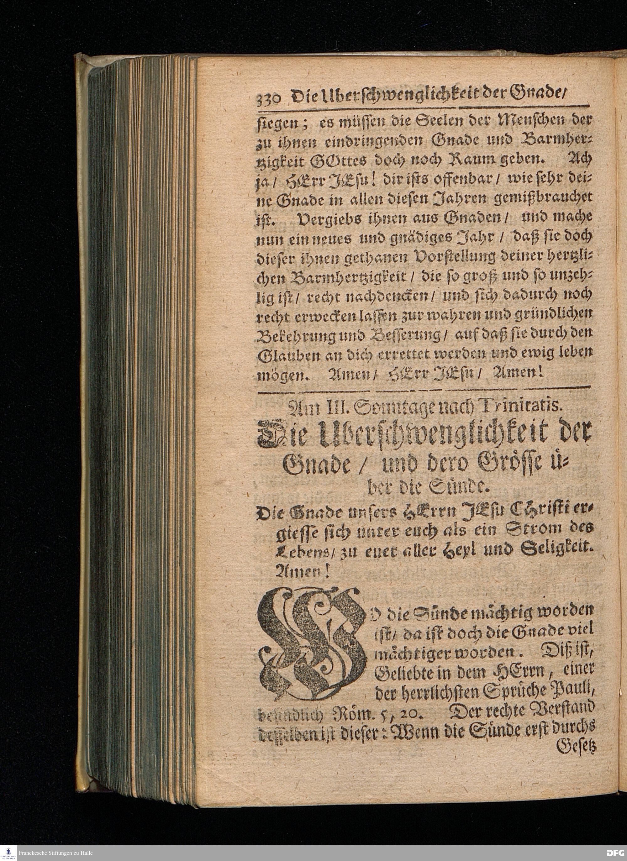 August Hermann Franckens / S.Theol.Prof.& Past. zu S.Ulrich, und des Gymnasii Scholarchæ, Kurtze Sonn= und Fest=Tags=Predigten / Darinnen Vornemlich zum wahren / lebendigen / Kraft=vollen und in guten Früchten sich beweisenden Glauben, die nöthige Aufweckung und Anweisung gegeben wird. Die andere EDITION, mit einer neuen Vorrede und einem Register versehen. HALLE, in Verlegung des Wäysen=Hause MDCCXVIII.