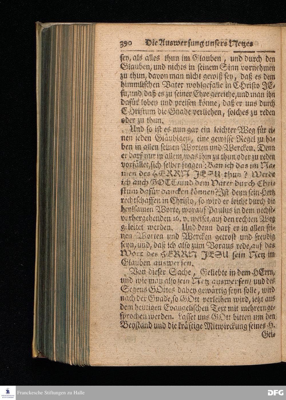 August Hermann Franckens / S.Theol.Prof.& Past. zu S.Ulrich, und des Gymnasii Scholarchæ, Kurtze Sonn= und Fest=Tags=Predigten / Darinnen Vornemlich zum wahren / lebendigen / Kraft=vollen und in guten Früchten sich beweisenden Glauben, die nöthige Aufweckung und Anweisung gegeben wird. Die andere EDITION, mit einer neuen Vorrede und einem Register versehen. HALLE, in Verlegung des Wäysen=Hause MDCCXVIII.