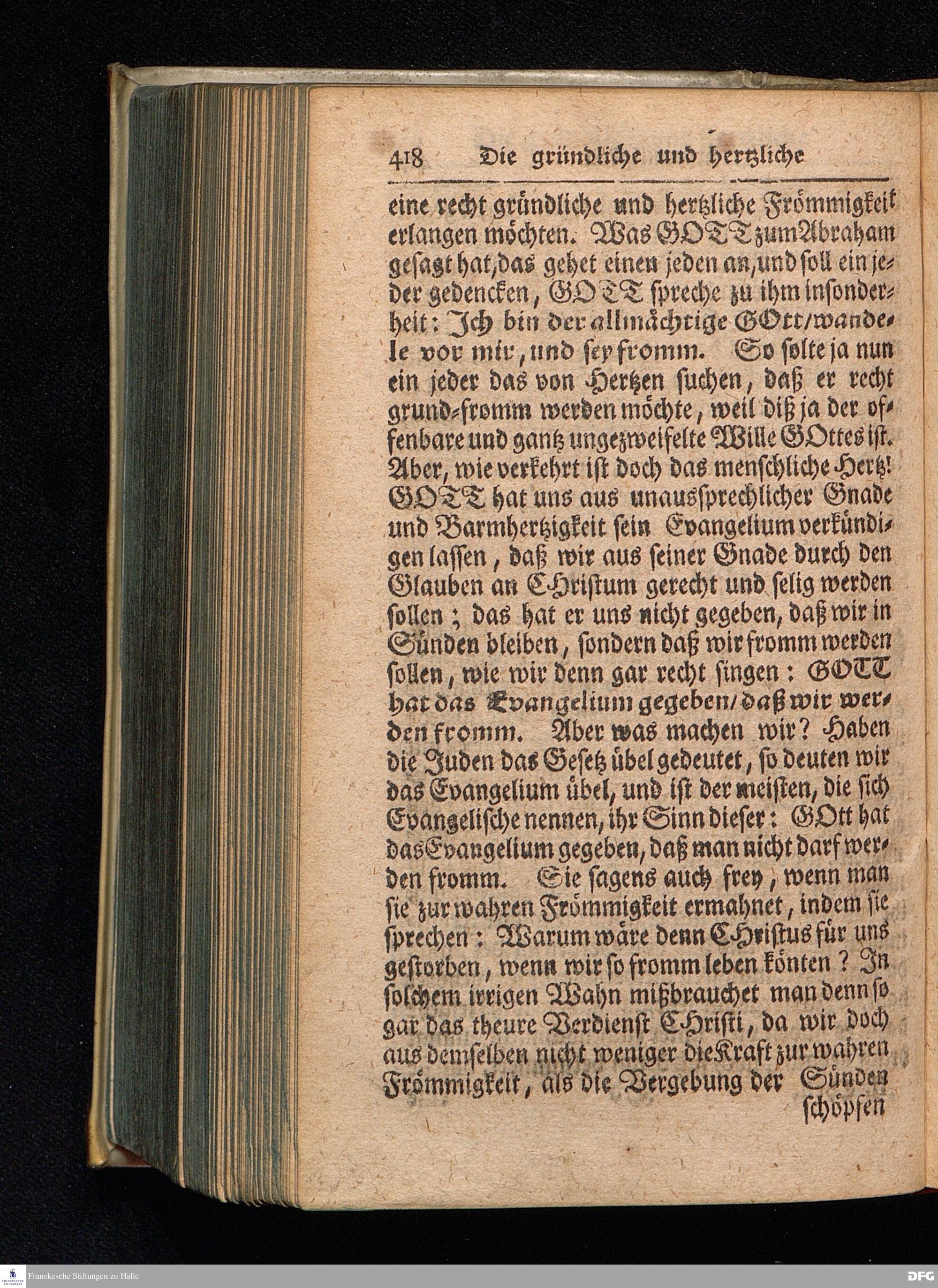 August Hermann Franckens / S.Theol.Prof.& Past. zu S.Ulrich, und des Gymnasii Scholarchæ, Kurtze Sonn= und Fest=Tags=Predigten / Darinnen Vornemlich zum wahren / lebendigen / Kraft=vollen und in guten Früchten sich beweisenden Glauben, die nöthige Aufweckung und Anweisung gegeben wird. Die andere EDITION, mit einer neuen Vorrede und einem Register versehen. HALLE, in Verlegung des Wäysen=Hause MDCCXVIII.