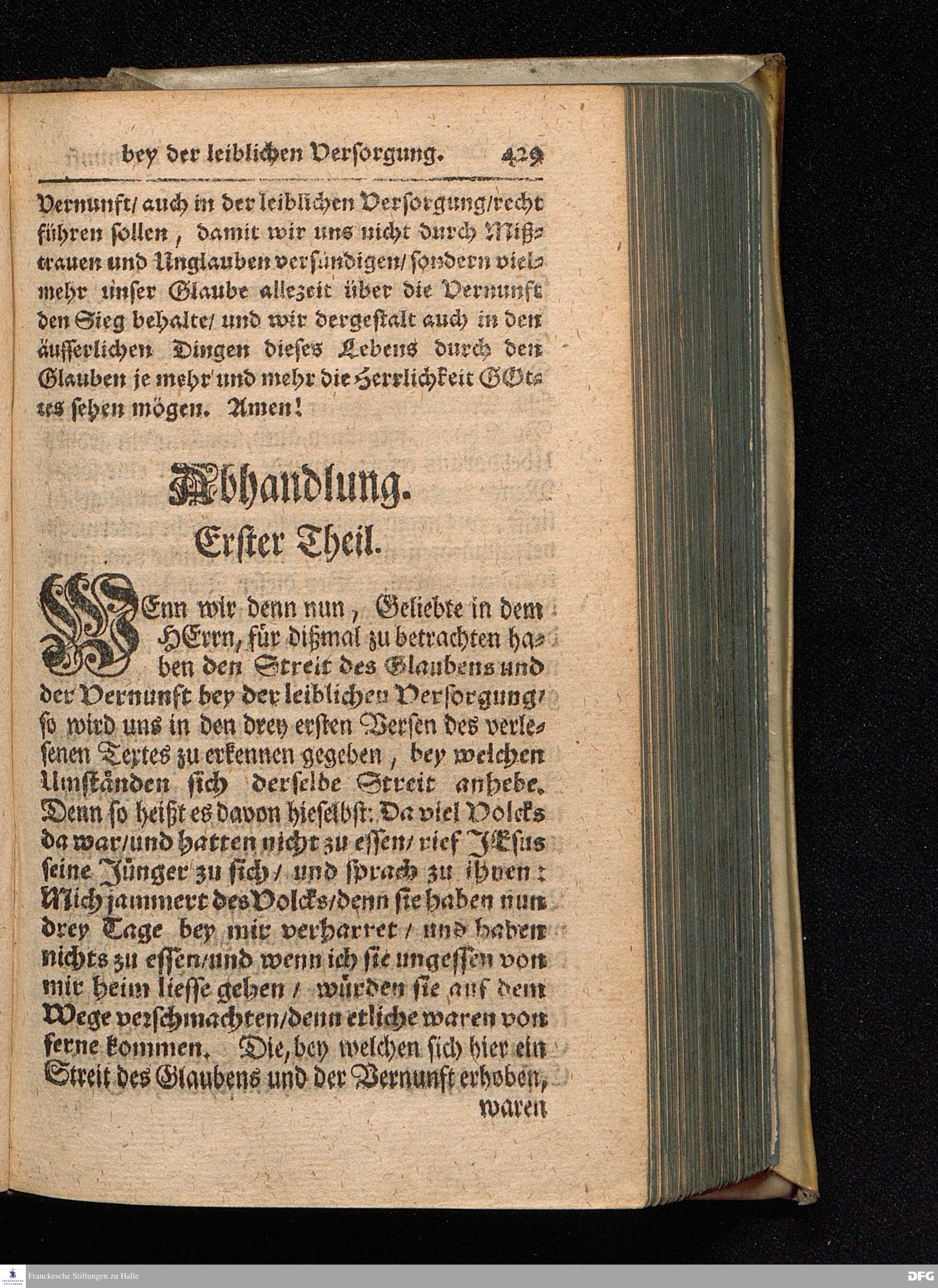 August Hermann Franckens / S.Theol.Prof.& Past. zu S.Ulrich, und des Gymnasii Scholarchæ, Kurtze Sonn= und Fest=Tags=Predigten / Darinnen Vornemlich zum wahren / lebendigen / Kraft=vollen und in guten Früchten sich beweisenden Glauben, die nöthige Aufweckung und Anweisung gegeben wird. Die andere EDITION, mit einer neuen Vorrede und einem Register versehen. HALLE, in Verlegung des Wäysen=Hause MDCCXVIII.