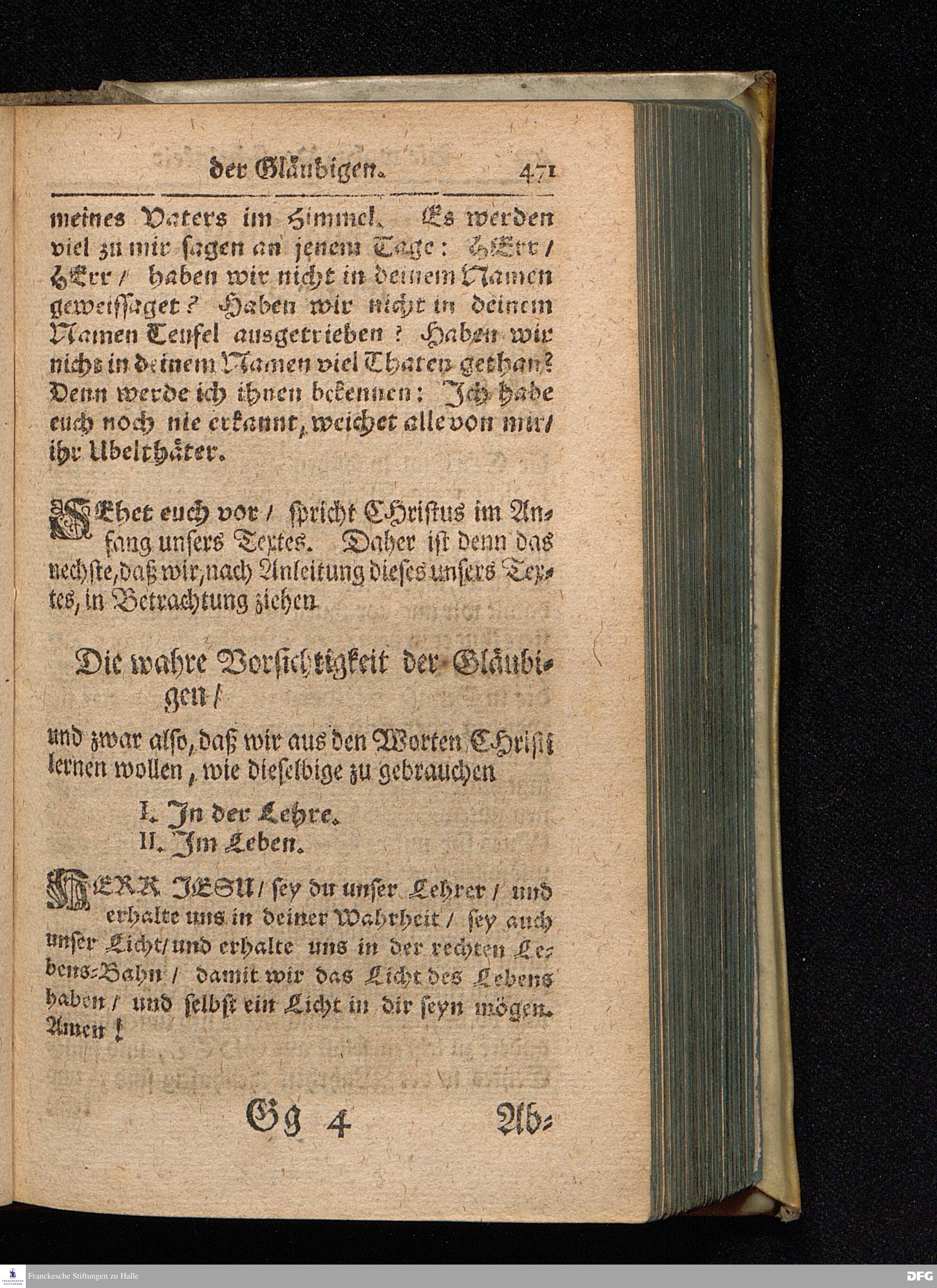 August Hermann Franckens / S.Theol.Prof.& Past. zu S.Ulrich, und des Gymnasii Scholarchæ, Kurtze Sonn= und Fest=Tags=Predigten / Darinnen Vornemlich zum wahren / lebendigen / Kraft=vollen und in guten Früchten sich beweisenden Glauben, die nöthige Aufweckung und Anweisung gegeben wird. Die andere EDITION, mit einer neuen Vorrede und einem Register versehen. HALLE, in Verlegung des Wäysen=Hause MDCCXVIII.