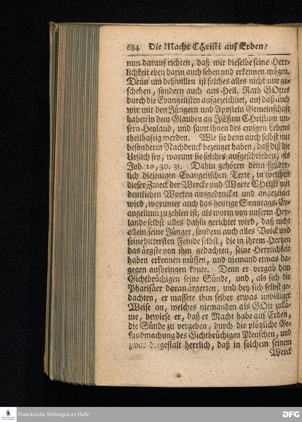 August Hermann Franckens / S.Theol.Prof.& Past. zu S.Ulrich, und des Gymnasii Scholarchæ, Kurtze Sonn= und Fest=Tags=Predigten / Darinnen Vornemlich zum wahren / lebendigen / Kraft=vollen und in guten Früchten sich beweisenden Glauben, die nöthige Aufweckung und Anweisung gegeben wird. Die andere EDITION, mit einer neuen Vorrede und einem Register versehen. HALLE, in Verlegung des Wäysen=Hause MDCCXVIII.
