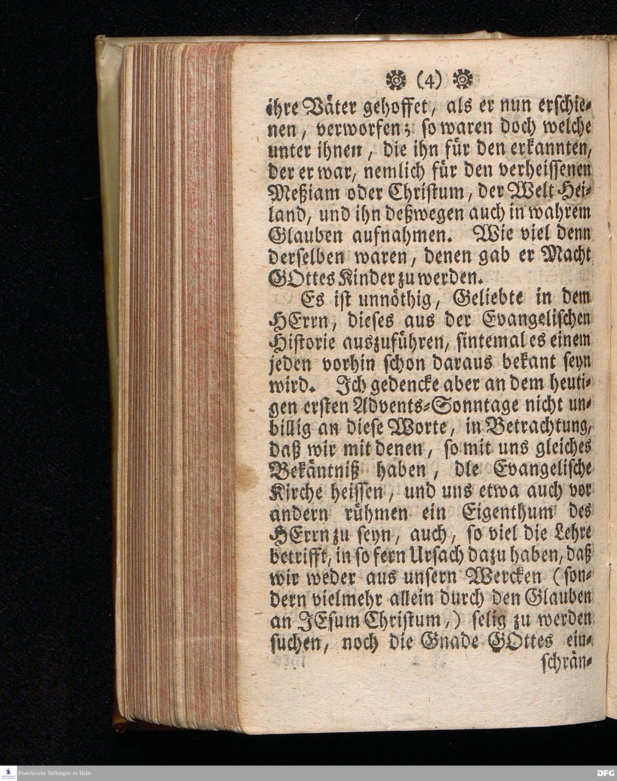 Spiegel der Aufnahme CHRISTI In dem Exempel derer / die Ihn aufgenommen und nicht aufgenommen haben, Zur Nachfolge und Warnung, Am 1sten Advents=Soñtage A.1717. aus Matth.21, 1==9. In einer auf der Universität Tübingen liebreichst aufgetragenen, und in der Haupt=Kirche daselbst abgelegten Predigt vorgestellet Und auf Erfordern zum Druck gegeben von August Hermann Francken / S.Theol.Professore, Past. und Scholarcha zu Halle im Hertzogthum Magdeb. Dritte Auflage. Nach dem zu Stuttgart gedruckten Exemplar in Halle abgedruckt. 1723.