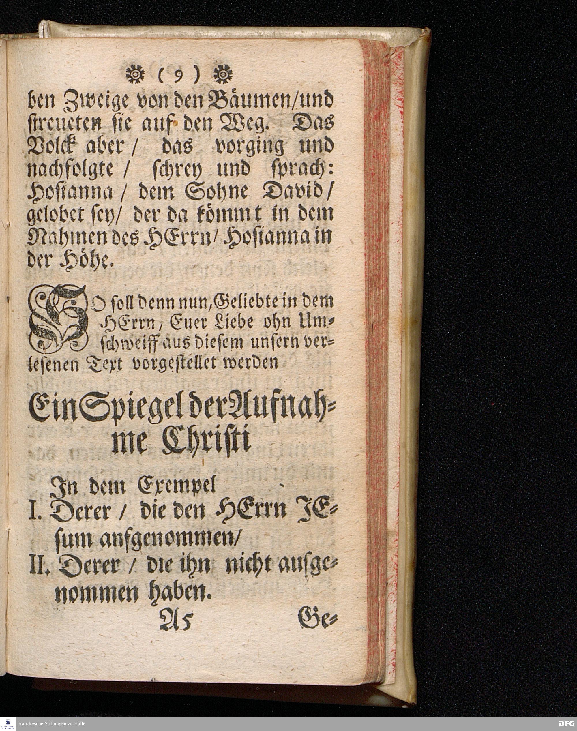 Spiegel der Aufnahme CHRISTI In dem Exempel derer / die Ihn aufgenommen und nicht aufgenommen haben, Zur Nachfolge und Warnung, Am 1sten Advents=Soñtage A.1717. aus Matth.21, 1==9. In einer auf der Universität Tübingen liebreichst aufgetragenen, und in der Haupt=Kirche daselbst abgelegten Predigt vorgestellet Und auf Erfordern zum Druck gegeben von August Hermann Francken / S.Theol.Professore, Past. und Scholarcha zu Halle im Hertzogthum Magdeb. Dritte Auflage. Nach dem zu Stuttgart gedruckten Exemplar in Halle abgedruckt. 1723.