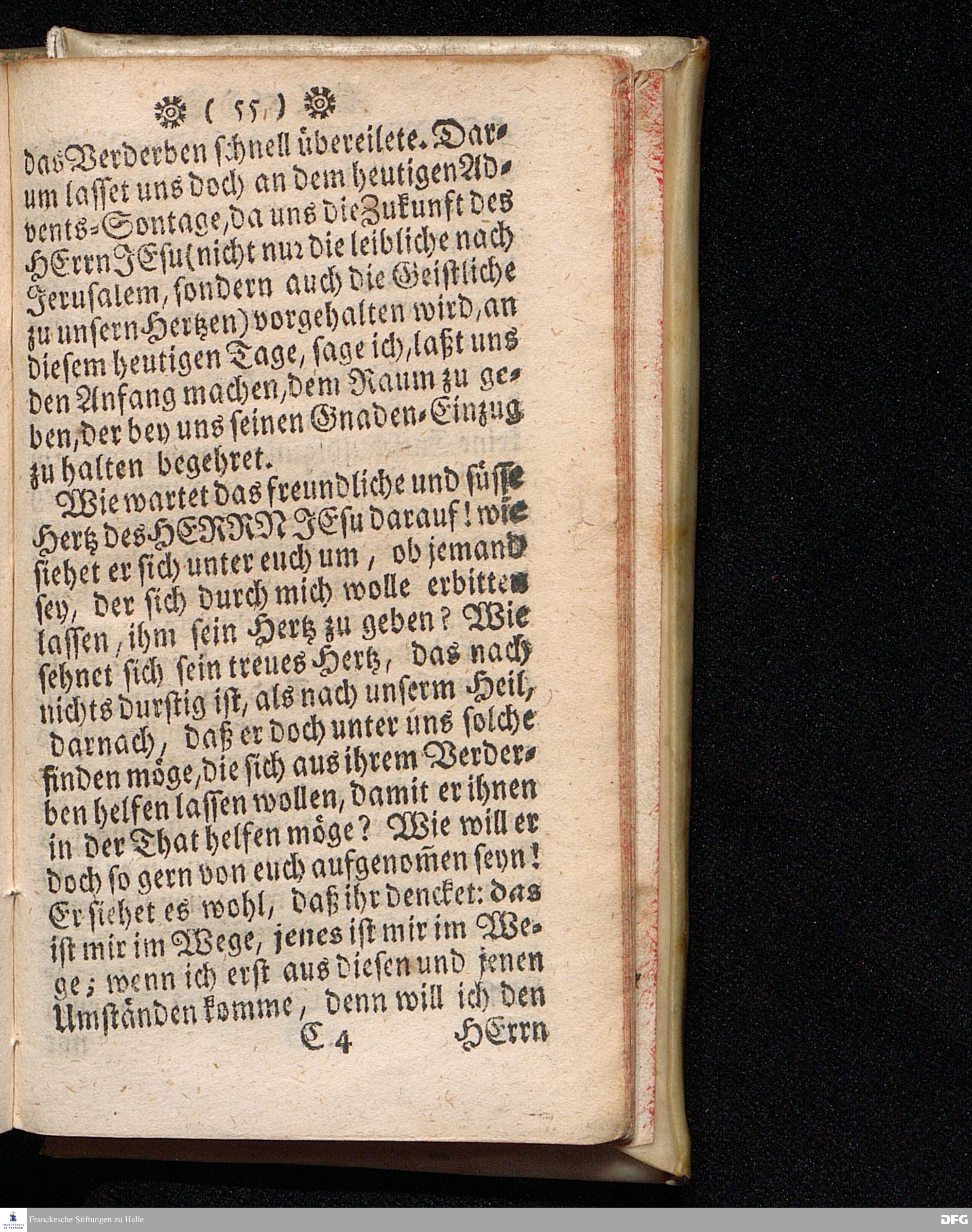 Spiegel der Aufnahme CHRISTI In dem Exempel derer / die Ihn aufgenommen und nicht aufgenommen haben, Zur Nachfolge und Warnung, Am 1sten Advents=Soñtage A.1717. aus Matth.21, 1==9. In einer auf der Universität Tübingen liebreichst aufgetragenen, und in der Haupt=Kirche daselbst abgelegten Predigt vorgestellet Und auf Erfordern zum Druck gegeben von August Hermann Francken / S.Theol.Professore, Past. und Scholarcha zu Halle im Hertzogthum Magdeb. Dritte Auflage. Nach dem zu Stuttgart gedruckten Exemplar in Halle abgedruckt. 1723.