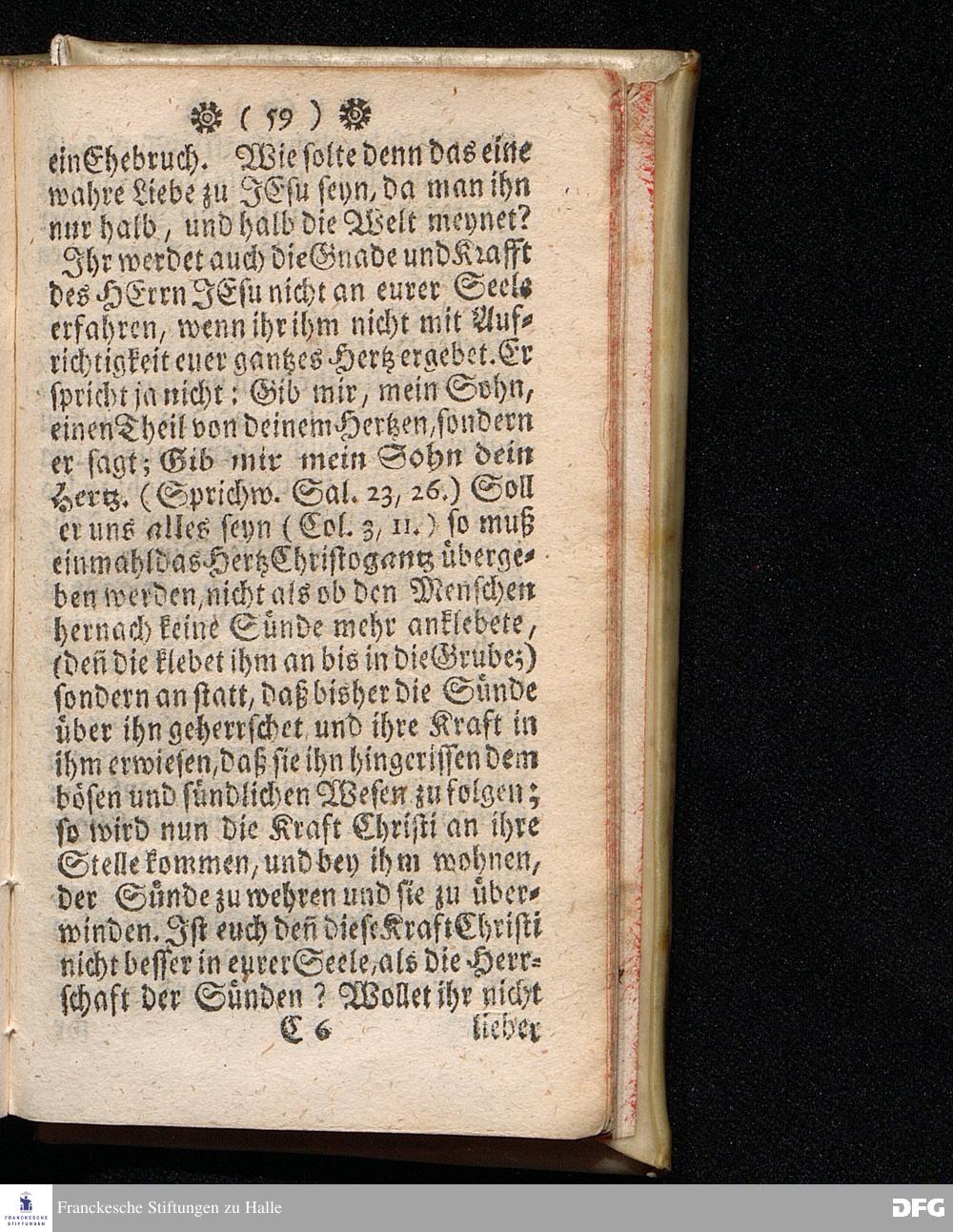 Spiegel der Aufnahme CHRISTI In dem Exempel derer / die Ihn aufgenommen und nicht aufgenommen haben, Zur Nachfolge und Warnung, Am 1sten Advents=Soñtage A.1717. aus Matth.21, 1==9. In einer auf der Universität Tübingen liebreichst aufgetragenen, und in der Haupt=Kirche daselbst abgelegten Predigt vorgestellet Und auf Erfordern zum Druck gegeben von August Hermann Francken / S.Theol.Professore, Past. und Scholarcha zu Halle im Hertzogthum Magdeb. Dritte Auflage. Nach dem zu Stuttgart gedruckten Exemplar in Halle abgedruckt. 1723.