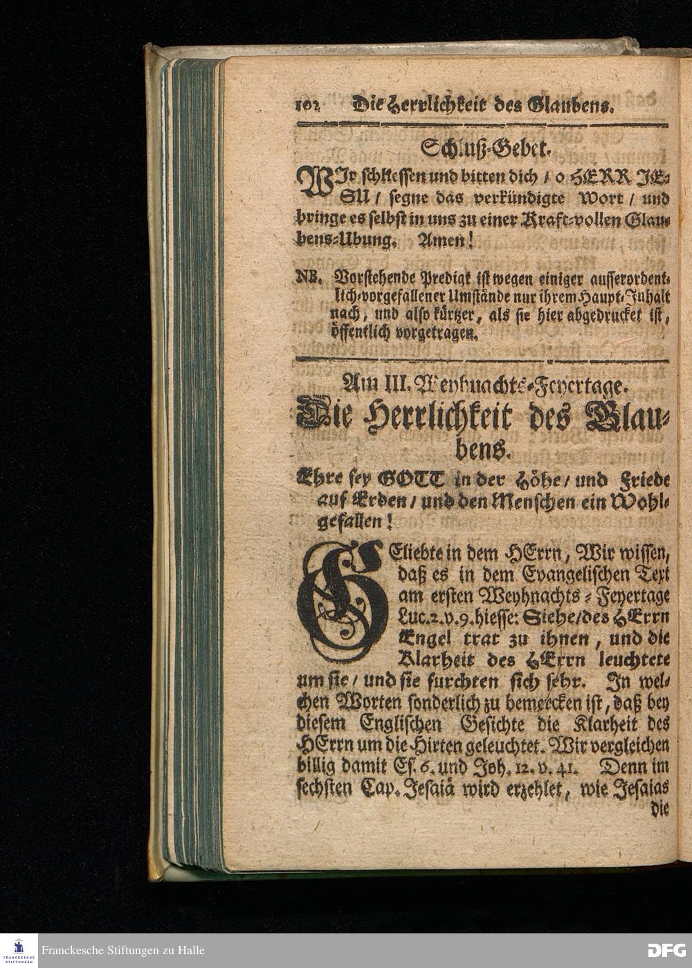 August Hermann Franckens / S.Theol.Prof.& Past. zu S.Ulrich, und des Gymnasii Scholarchæ, Kurtze Sonn= und Fest=Tags=Predigten / Darinnen Vornemlich zum wahren / lebendigen / Kraft=vollen und in guten Früchten sich beweisenden Glauben, die nöthige Aufweckung und Anweisung gegeben wird. Die andere EDITION, mit einer neuen Vorrede und einem Register versehen. HALLE, in Verlegung des Wäysen=Hause MDCCXVIII.