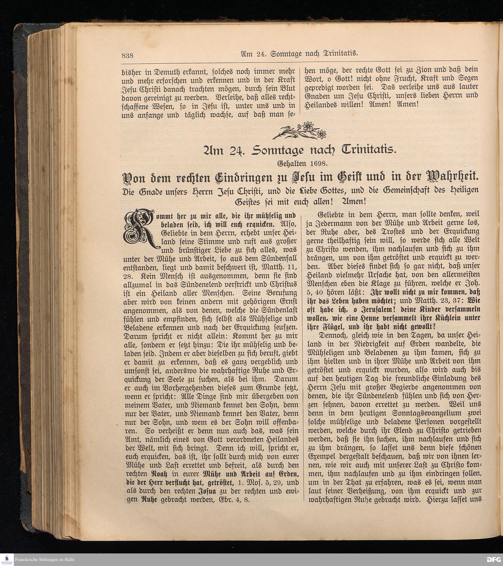 August Hermann Francke's weil.d.Theol.Prof.u.Pastor in Halle a.S., Sonn-, Fest- u. Aposteltags-Predigten, darinnen die zum wahren Christenthum gehörigen und vornehmsten Lehren behandelt sind. Aufs neue herausgegeben, verlegt und nur allein zu beziehen vom Ostpr.evang.Gebets=Verein in Berlin, Anklamstraße 31. Tilsit 1902. Gedruckt bei M. Jagomast.