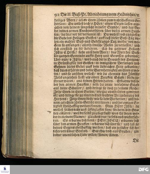 Von der Abmahnung von dem heidnischen / und Anmahnung zu dem rechtschaffenen Christlichen Wandel. Die III.Buß=Predigt, den 1.Decembr.1700.