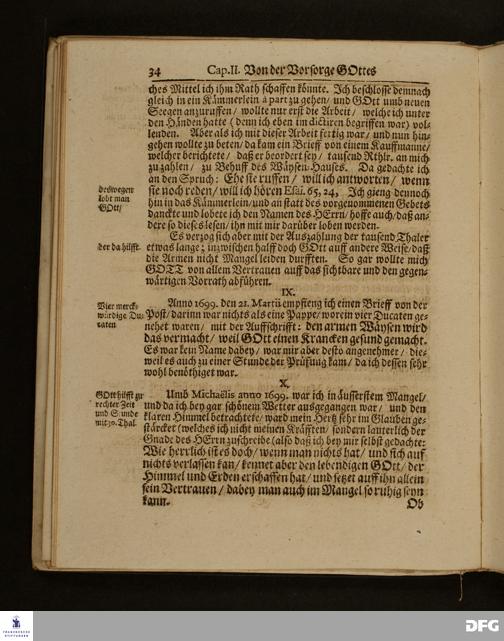 Die Fußstapffen Des noch lebenden und waltenden liebreichen und getreuen GOTTES / Zur Beschämung des Unglaubens / und Stärckung des Glaubens / Durch den Ausführlichen Bericht Vom Wäysen=Hause / Armen=Schulen / und übriger Armen=Verpflegung Zu Glaucha an Halle / Wie selbige fortgesetzet biß Ostern Anno 1701. Entdecket von August Hermann Francken / S.Th.Prof.Ord.und Past. [Spruch.] Mit Königl.Preußischen und Churfl.Brandenb.Privilegio. In Verlegung des Wäysen=Hauses zu Glaucha an Halle / 1701.