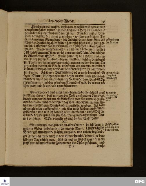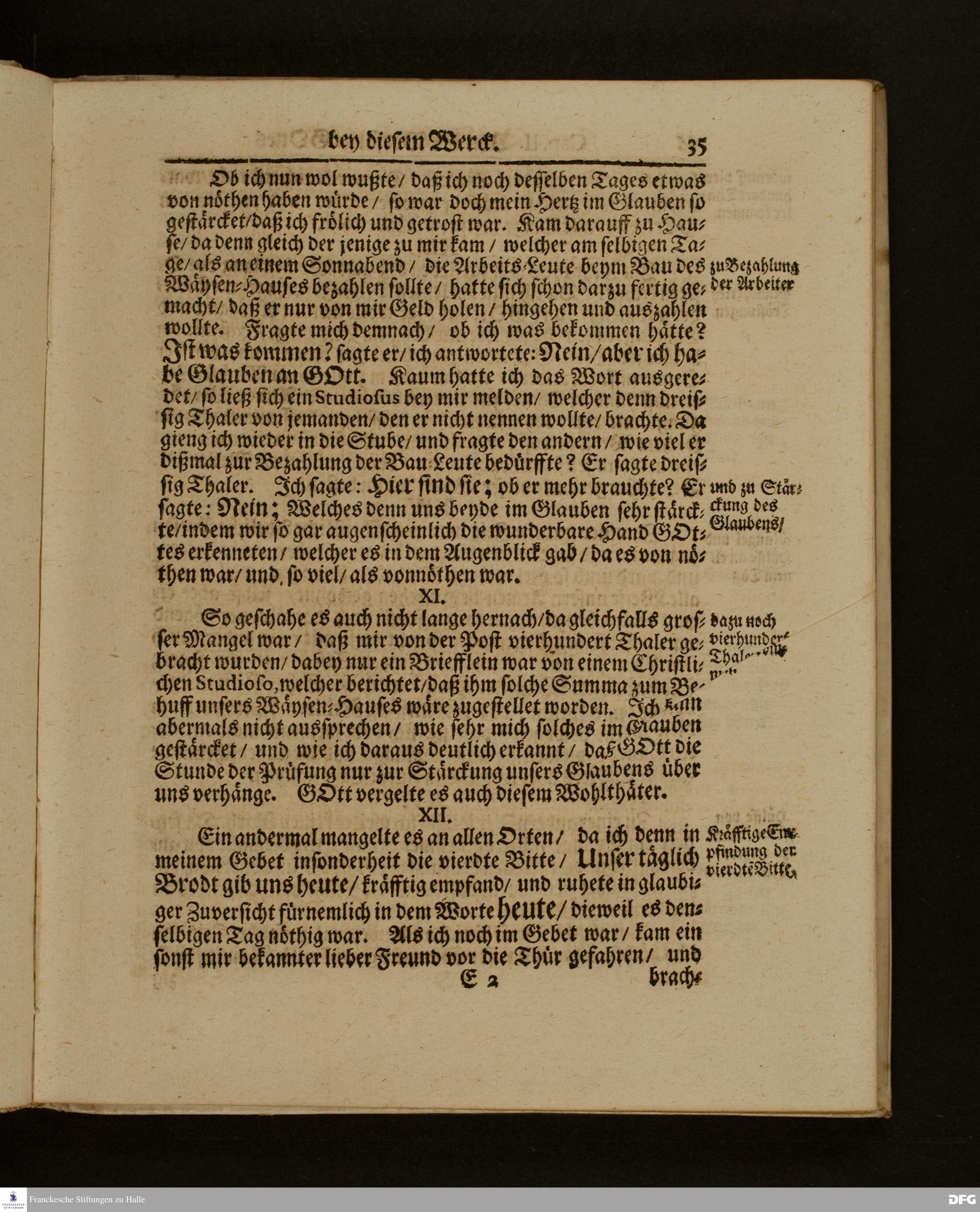 Die Fußstapffen Des noch lebenden und waltenden liebreichen und getreuen GOTTES / Zur Beschämung des Unglaubens / und Stärckung des Glaubens / Durch den Ausführlichen Bericht Vom Wäysen=Hause / Armen=Schulen / und übriger Armen=Verpflegung Zu Glaucha an Halle / Wie selbige fortgesetzet biß Ostern Anno 1701. Entdecket von August Hermann Francken / S.Th.Prof.Ord.und Past. [Spruch.] Mit Königl.Preußischen und Churfl.Brandenb.Privilegio. In Verlegung des Wäysen=Hauses zu Glaucha an Halle / 1701.