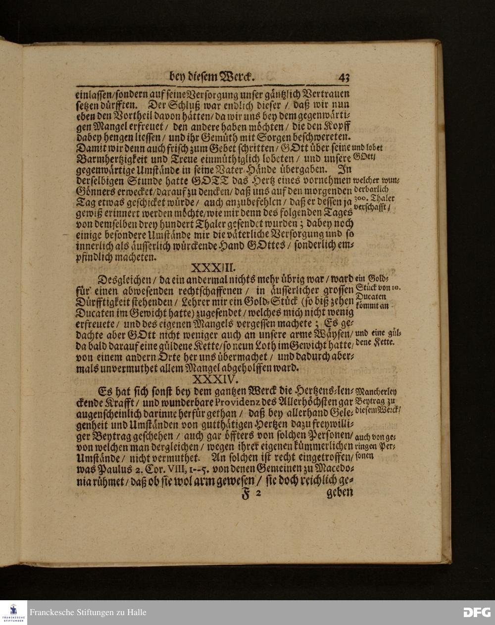 Die Fußstapffen Des noch lebenden und waltenden liebreichen und getreuen GOTTES / Zur Beschämung des Unglaubens / und Stärckung des Glaubens / Durch den Ausführlichen Bericht Vom Wäysen=Hause / Armen=Schulen / und übriger Armen=Verpflegung Zu Glaucha an Halle / Wie selbige fortgesetzet biß Ostern Anno 1701. Entdecket von August Hermann Francken / S.Th.Prof.Ord.und Past. [Spruch.] Mit Königl.Preußischen und Churfl.Brandenb.Privilegio. In Verlegung des Wäysen=Hauses zu Glaucha an Halle / 1701.