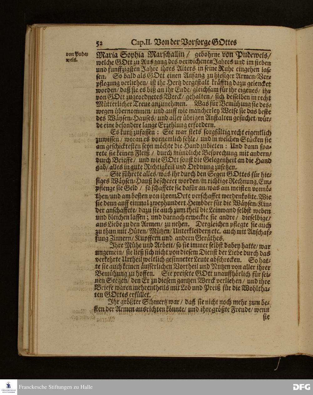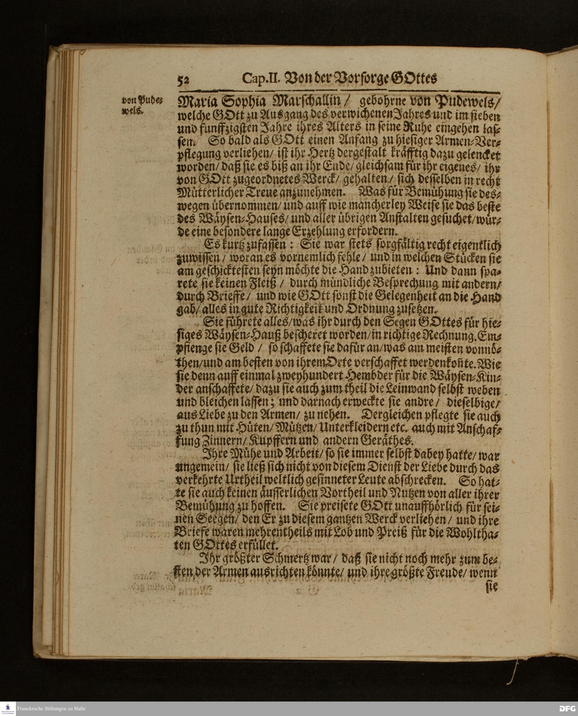 Die Fußstapffen Des noch lebenden und waltenden liebreichen und getreuen GOTTES / Zur Beschämung des Unglaubens / und Stärckung des Glaubens / Durch den Ausführlichen Bericht Vom Wäysen=Hause / Armen=Schulen / und übriger Armen=Verpflegung Zu Glaucha an Halle / Wie selbige fortgesetzet biß Ostern Anno 1701. Entdecket von August Hermann Francken / S.Th.Prof.Ord.und Past. [Spruch.] Mit Königl.Preußischen und Churfl.Brandenb.Privilegio. In Verlegung des Wäysen=Hauses zu Glaucha an Halle / 1701.