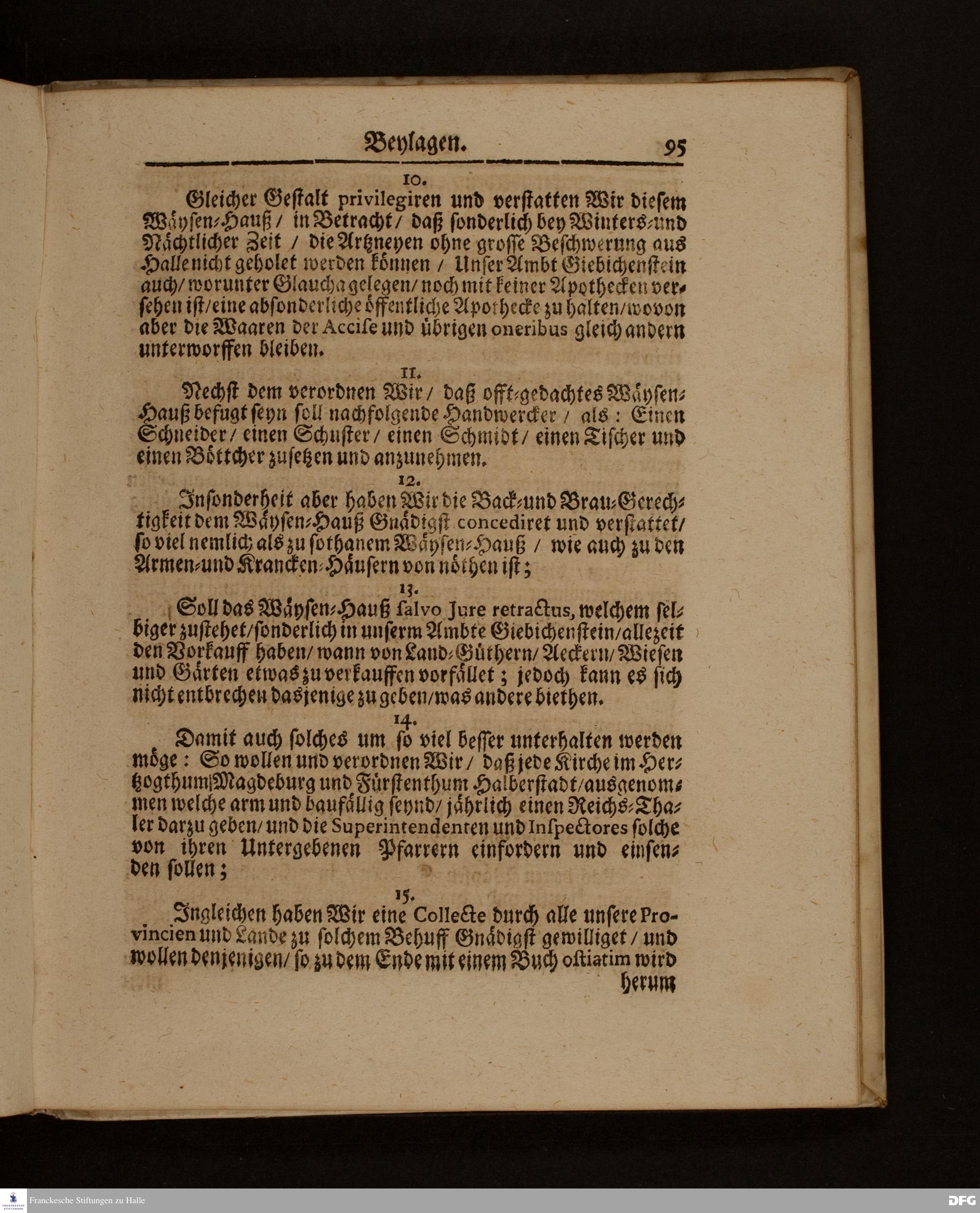 Die Fußstapffen Des noch lebenden und waltenden liebreichen und getreuen GOTTES / Zur Beschämung des Unglaubens / und Stärckung des Glaubens / Durch den Ausführlichen Bericht Vom Wäysen=Hause / Armen=Schulen / und übriger Armen=Verpflegung Zu Glaucha an Halle / Wie selbige fortgesetzet biß Ostern Anno 1701. Entdecket von August Hermann Francken / S.Th.Prof.Ord.und Past. [Spruch.] Mit Königl.Preußischen und Churfl.Brandenb.Privilegio. In Verlegung des Wäysen=Hauses zu Glaucha an Halle / 1701.