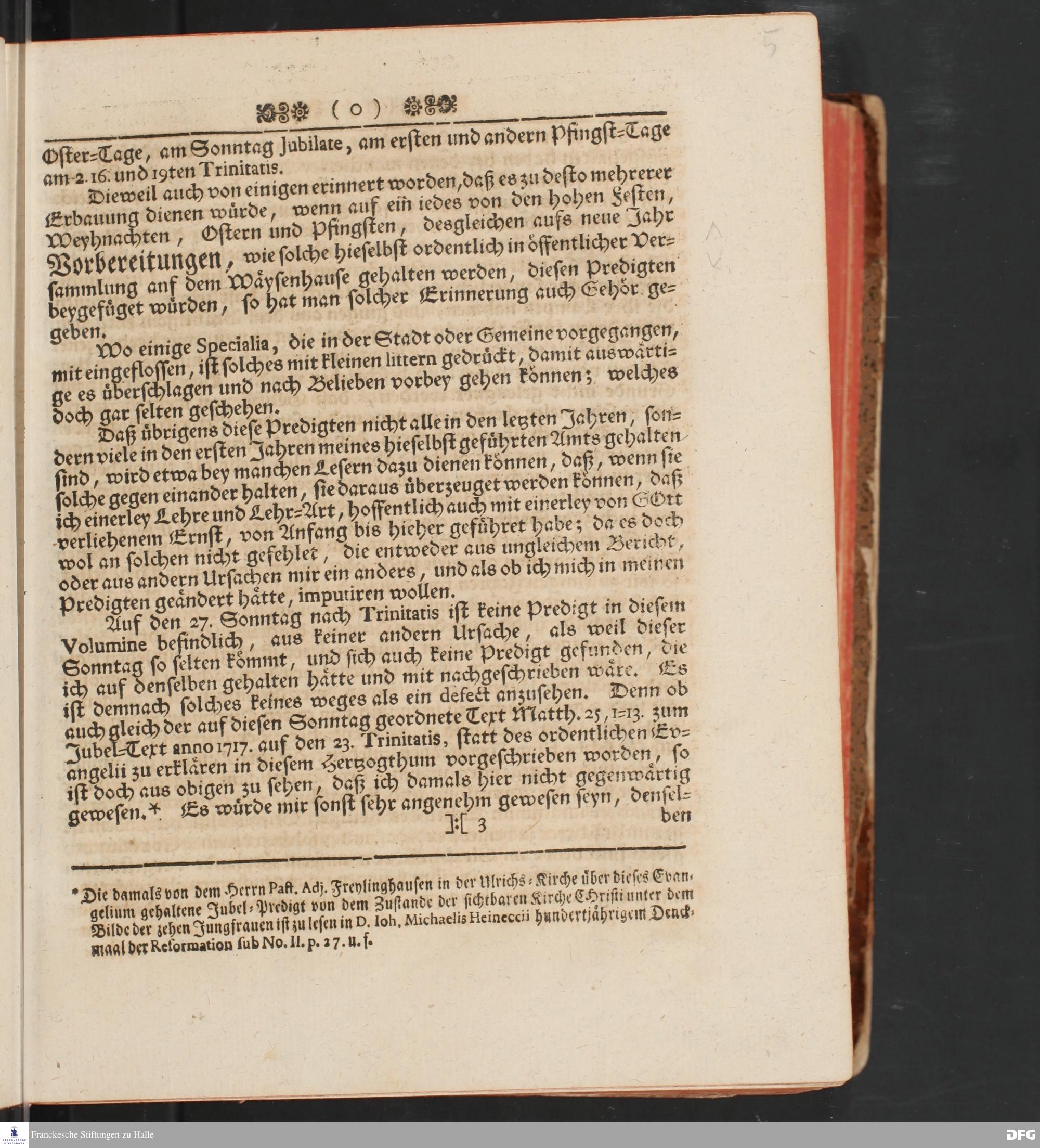 August Hermann Franckens, S.Theol.Prof.und Past. Sonn= und Fest=Tags=Predigten / Welche Theils in Halle, theils an verschiedenen auswärtigen Oertern, von wichtigen und auserlesenen Materien gehalten worden, Nebst Vorbereitung auf die hohen Feste und nützlichen Registern. Dritte Auflage. HALLE, gedruckt und verlegt im Wäysen=Hause MDCCXL. Mit Königl.Preuß.und Churfl.Brandenb.Privileg.