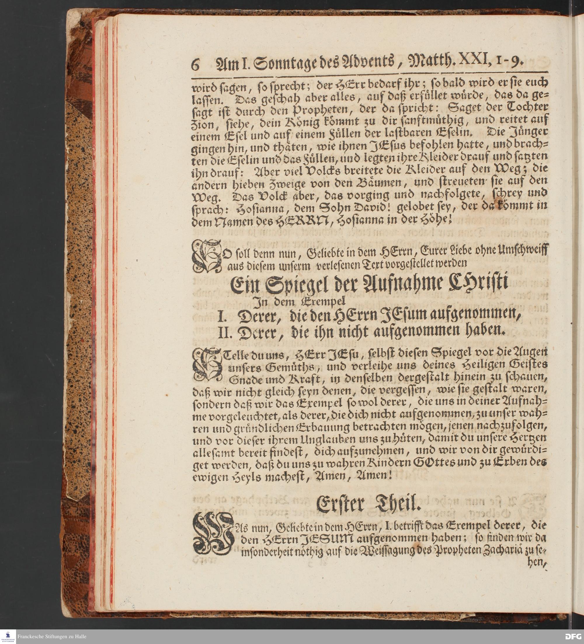 August Hermann Franckens, S.Theol.Prof.und Past. Sonn= und Fest=Tags=Predigten / Welche Theils in Halle, theils an verschiedenen auswärtigen Oertern, von wichtigen und auserlesenen Materien gehalten worden, Nebst Vorbereitung auf die hohen Feste und nützlichen Registern. Dritte Auflage. HALLE, gedruckt und verlegt im Wäysen=Hause MDCCXL. Mit Königl.Preuß.und Churfl.Brandenb.Privileg.