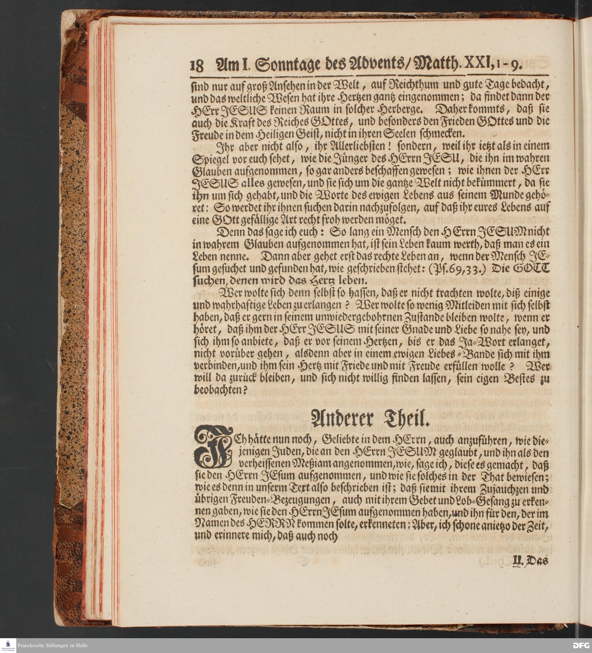 August Hermann Franckens, S.Theol.Prof.und Past. Sonn= und Fest=Tags=Predigten / Welche Theils in Halle, theils an verschiedenen auswärtigen Oertern, von wichtigen und auserlesenen Materien gehalten worden, Nebst Vorbereitung auf die hohen Feste und nützlichen Registern. Dritte Auflage. HALLE, gedruckt und verlegt im Wäysen=Hause MDCCXL. Mit Königl.Preuß.und Churfl.Brandenb.Privileg.