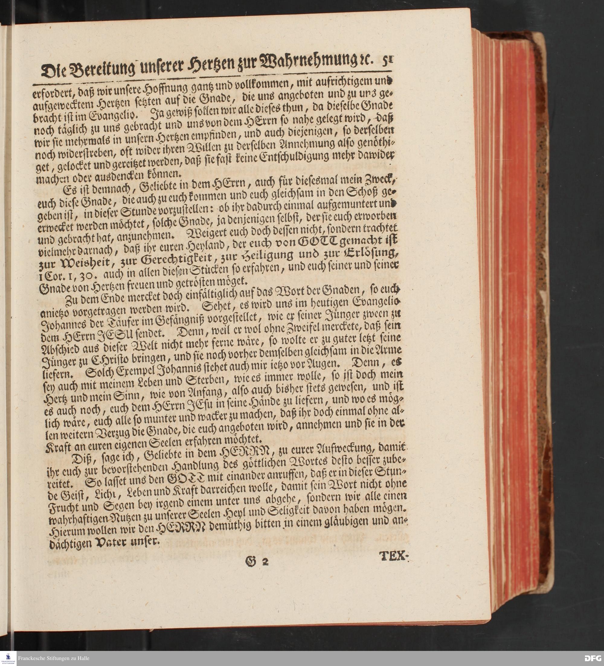 August Hermann Franckens, S.Theol.Prof.und Past. Sonn= und Fest=Tags=Predigten / Welche Theils in Halle, theils an verschiedenen auswärtigen Oertern, von wichtigen und auserlesenen Materien gehalten worden, Nebst Vorbereitung auf die hohen Feste und nützlichen Registern. Dritte Auflage. HALLE, gedruckt und verlegt im Wäysen=Hause MDCCXL. Mit Königl.Preuß.und Churfl.Brandenb.Privileg.