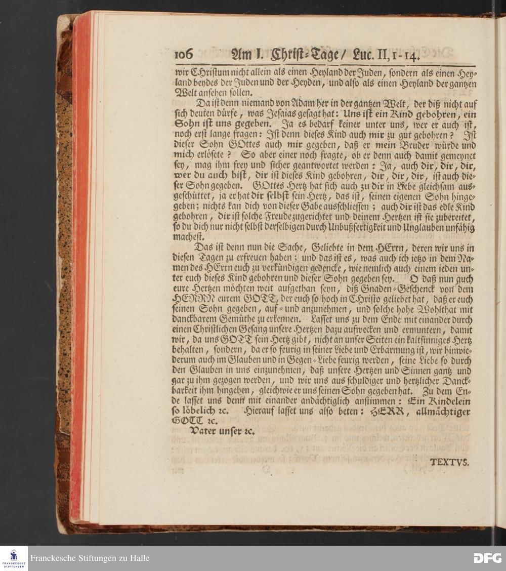 August Hermann Franckens, S.Theol.Prof.und Past. Sonn= und Fest=Tags=Predigten / Welche Theils in Halle, theils an verschiedenen auswärtigen Oertern, von wichtigen und auserlesenen Materien gehalten worden, Nebst Vorbereitung auf die hohen Feste und nützlichen Registern. Dritte Auflage. HALLE, gedruckt und verlegt im Wäysen=Hause MDCCXL. Mit Königl.Preuß.und Churfl.Brandenb.Privileg.