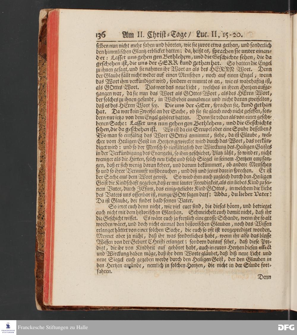 August Hermann Franckens, S.Theol.Prof.und Past. Sonn= und Fest=Tags=Predigten / Welche Theils in Halle, theils an verschiedenen auswärtigen Oertern, von wichtigen und auserlesenen Materien gehalten worden, Nebst Vorbereitung auf die hohen Feste und nützlichen Registern. Dritte Auflage. HALLE, gedruckt und verlegt im Wäysen=Hause MDCCXL. Mit Königl.Preuß.und Churfl.Brandenb.Privileg.