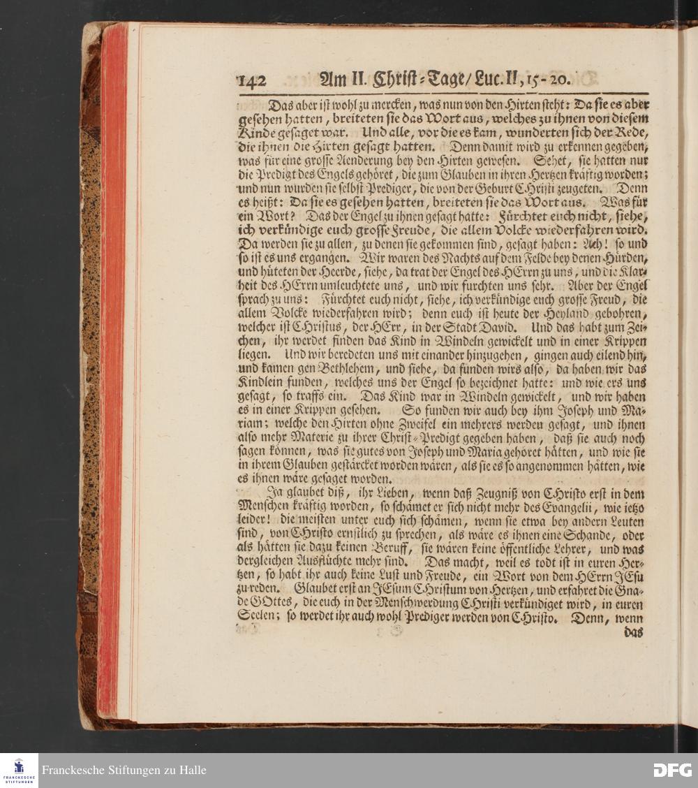 August Hermann Franckens, S.Theol.Prof.und Past. Sonn= und Fest=Tags=Predigten / Welche Theils in Halle, theils an verschiedenen auswärtigen Oertern, von wichtigen und auserlesenen Materien gehalten worden, Nebst Vorbereitung auf die hohen Feste und nützlichen Registern. Dritte Auflage. HALLE, gedruckt und verlegt im Wäysen=Hause MDCCXL. Mit Königl.Preuß.und Churfl.Brandenb.Privileg.