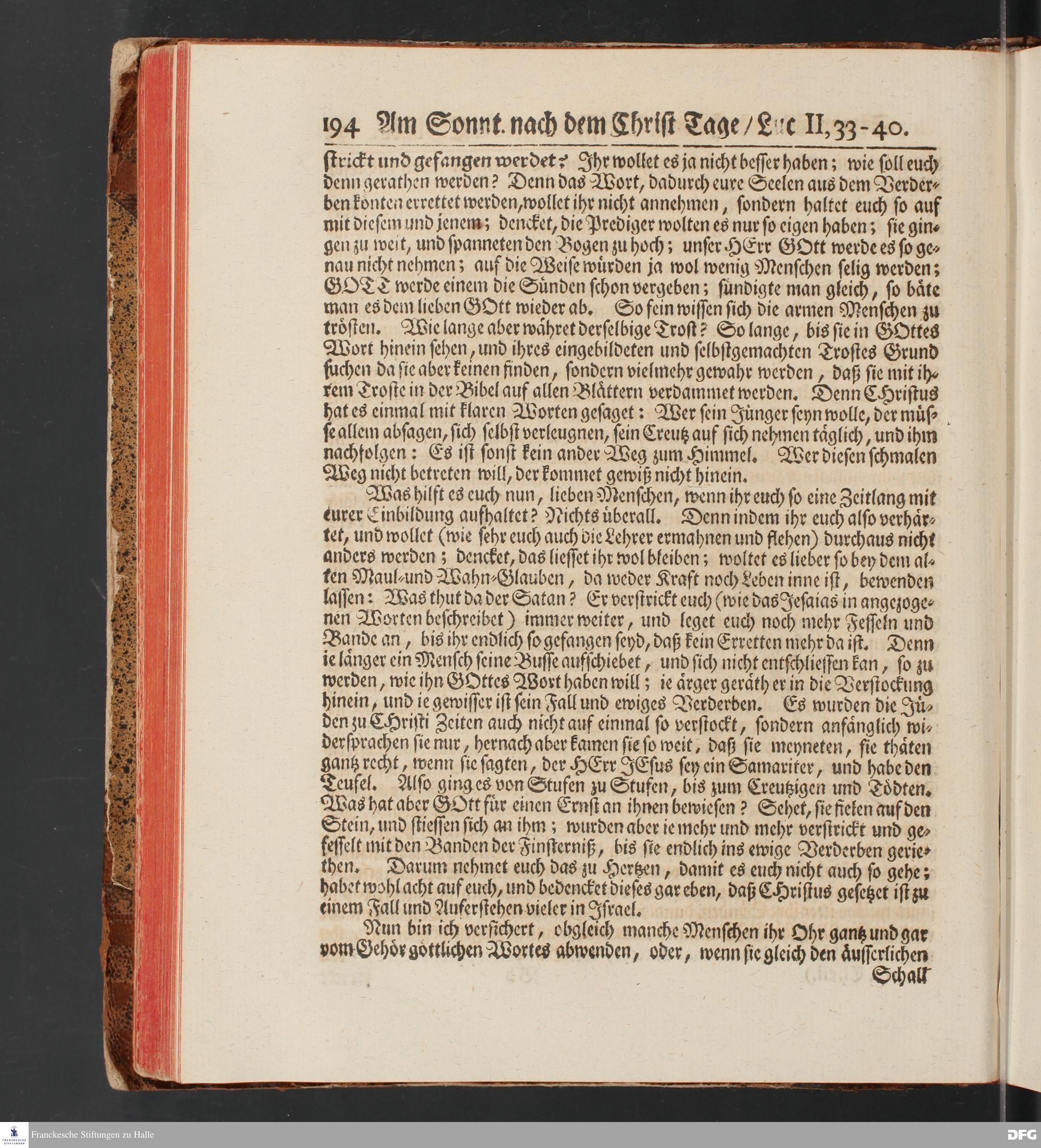August Hermann Franckens, S.Theol.Prof.und Past. Sonn= und Fest=Tags=Predigten / Welche Theils in Halle, theils an verschiedenen auswärtigen Oertern, von wichtigen und auserlesenen Materien gehalten worden, Nebst Vorbereitung auf die hohen Feste und nützlichen Registern. Dritte Auflage. HALLE, gedruckt und verlegt im Wäysen=Hause MDCCXL. Mit Königl.Preuß.und Churfl.Brandenb.Privileg.