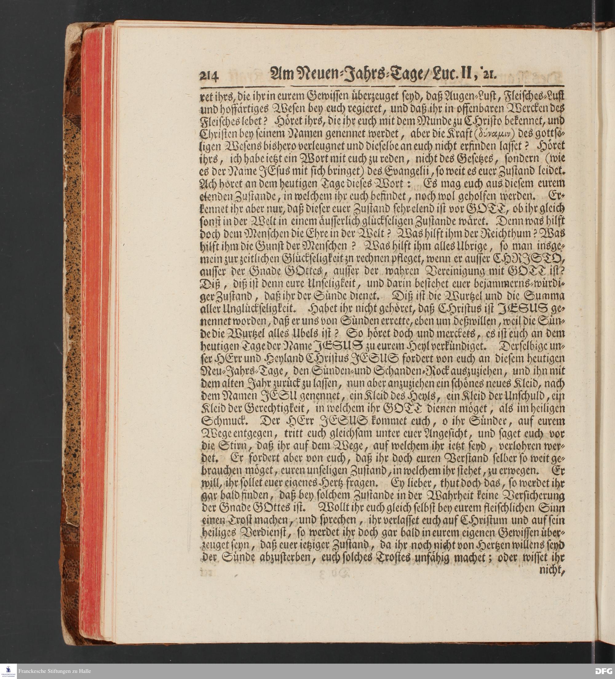 August Hermann Franckens, S.Theol.Prof.und Past. Sonn= und Fest=Tags=Predigten / Welche Theils in Halle, theils an verschiedenen auswärtigen Oertern, von wichtigen und auserlesenen Materien gehalten worden, Nebst Vorbereitung auf die hohen Feste und nützlichen Registern. Dritte Auflage. HALLE, gedruckt und verlegt im Wäysen=Hause MDCCXL. Mit Königl.Preuß.und Churfl.Brandenb.Privileg.