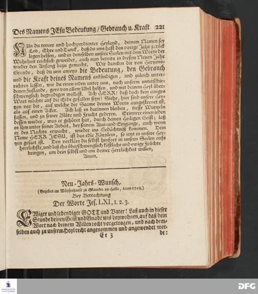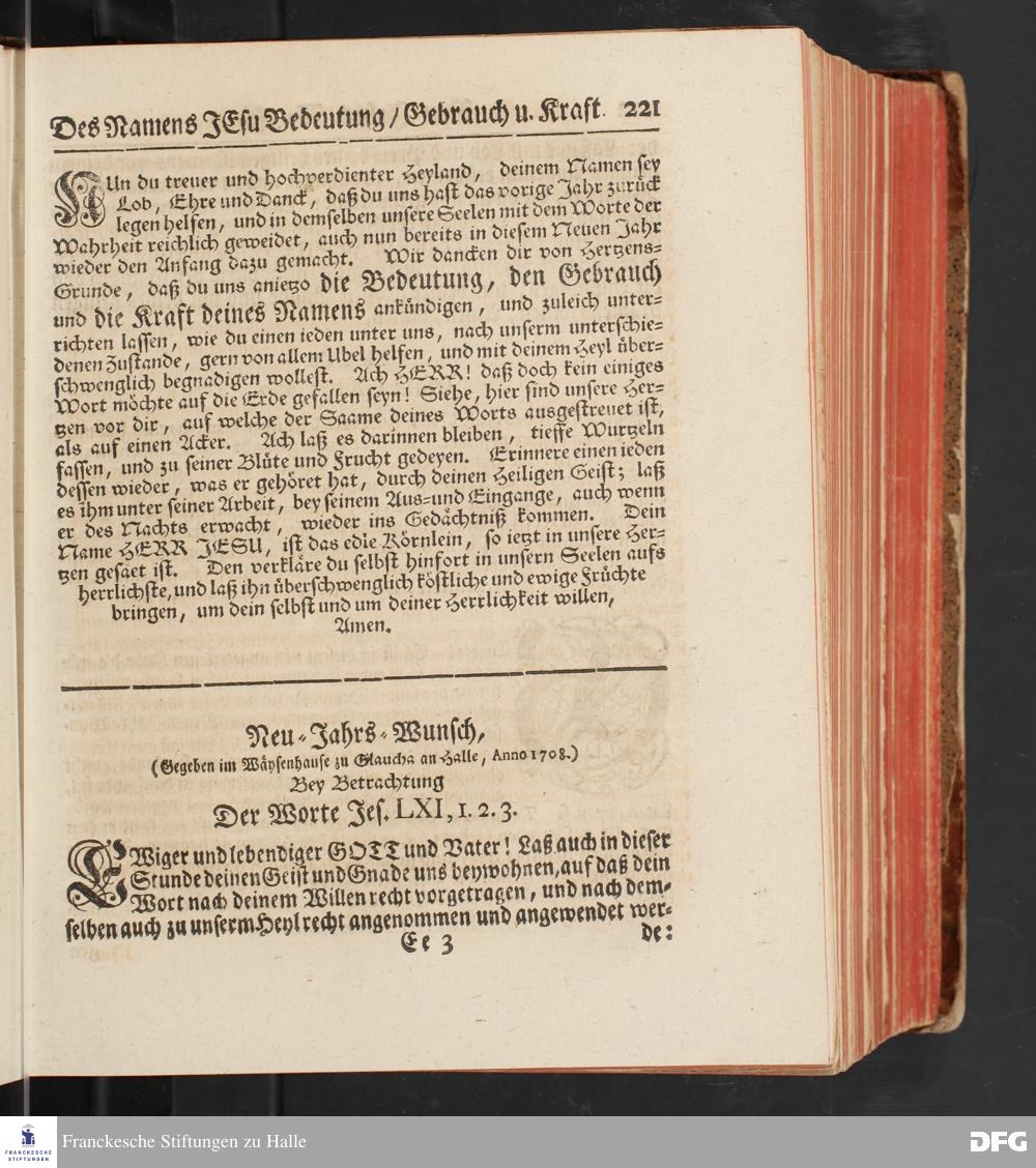 August Hermann Franckens, S.Theol.Prof.und Past. Sonn= und Fest=Tags=Predigten / Welche Theils in Halle, theils an verschiedenen auswärtigen Oertern, von wichtigen und auserlesenen Materien gehalten worden, Nebst Vorbereitung auf die hohen Feste und nützlichen Registern. Dritte Auflage. HALLE, gedruckt und verlegt im Wäysen=Hause MDCCXL. Mit Königl.Preuß.und Churfl.Brandenb.Privileg.