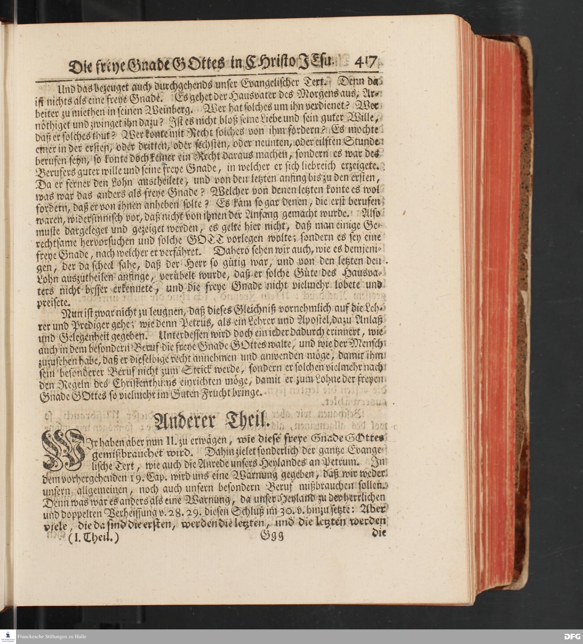 August Hermann Franckens, S.Theol.Prof.und Past. Sonn= und Fest=Tags=Predigten / Welche Theils in Halle, theils an verschiedenen auswärtigen Oertern, von wichtigen und auserlesenen Materien gehalten worden, Nebst Vorbereitung auf die hohen Feste und nützlichen Registern. Dritte Auflage. HALLE, gedruckt und verlegt im Wäysen=Hause MDCCXL. Mit Königl.Preuß.und Churfl.Brandenb.Privileg.