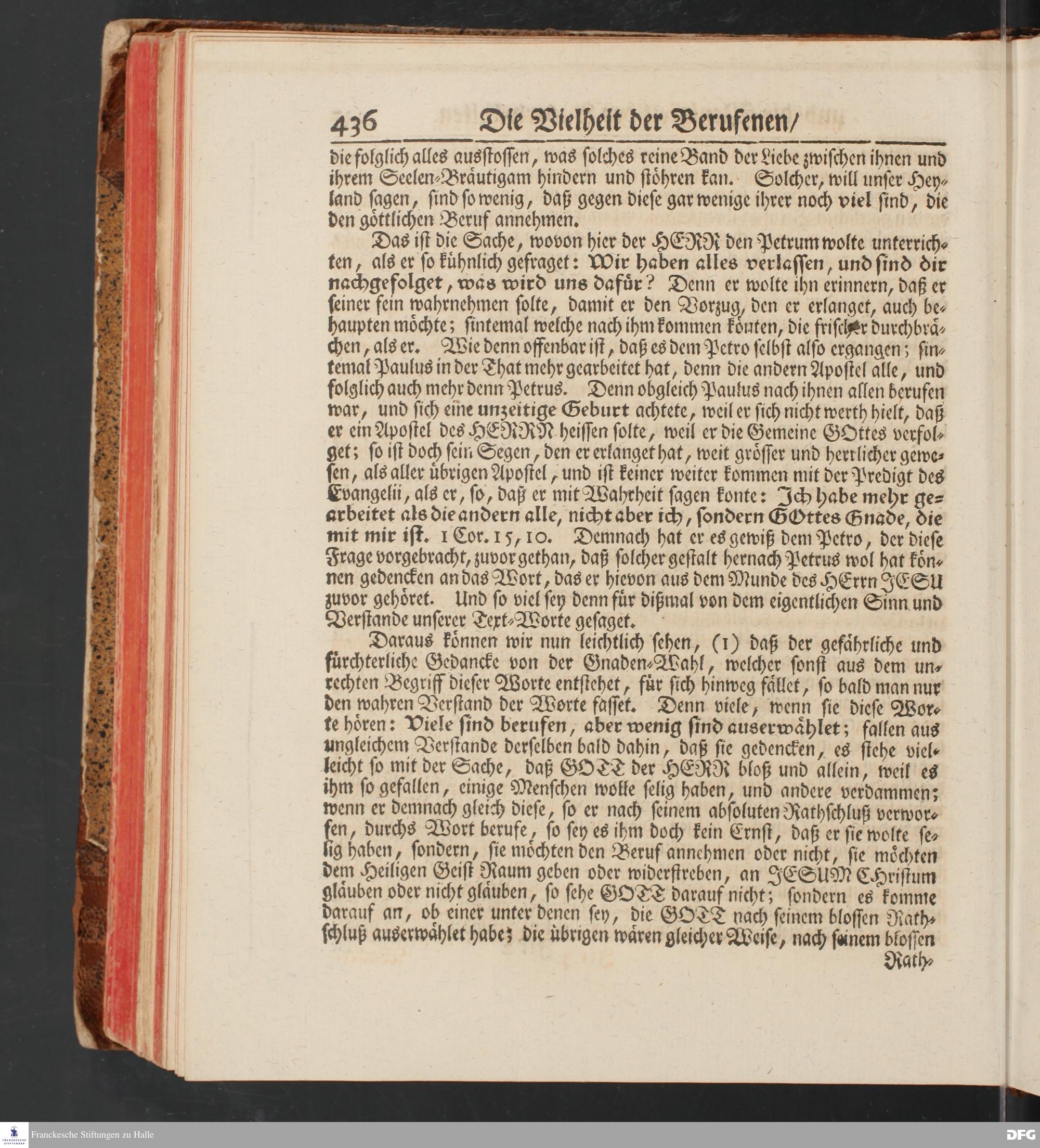 August Hermann Franckens, S.Theol.Prof.und Past. Sonn= und Fest=Tags=Predigten / Welche Theils in Halle, theils an verschiedenen auswärtigen Oertern, von wichtigen und auserlesenen Materien gehalten worden, Nebst Vorbereitung auf die hohen Feste und nützlichen Registern. Dritte Auflage. HALLE, gedruckt und verlegt im Wäysen=Hause MDCCXL. Mit Königl.Preuß.und Churfl.Brandenb.Privileg.