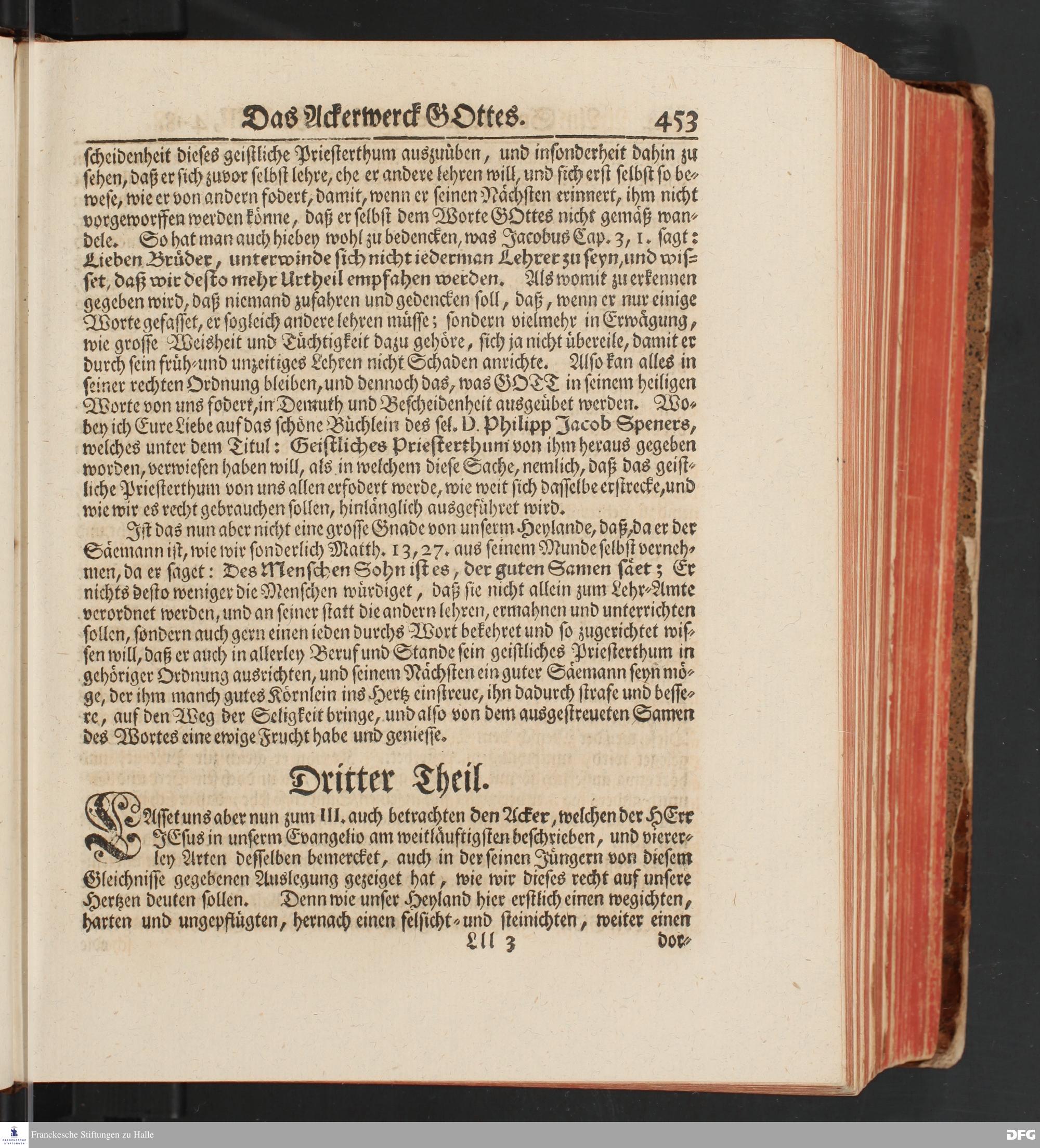 August Hermann Franckens, S.Theol.Prof.und Past. Sonn= und Fest=Tags=Predigten / Welche Theils in Halle, theils an verschiedenen auswärtigen Oertern, von wichtigen und auserlesenen Materien gehalten worden, Nebst Vorbereitung auf die hohen Feste und nützlichen Registern. Dritte Auflage. HALLE, gedruckt und verlegt im Wäysen=Hause MDCCXL. Mit Königl.Preuß.und Churfl.Brandenb.Privileg.