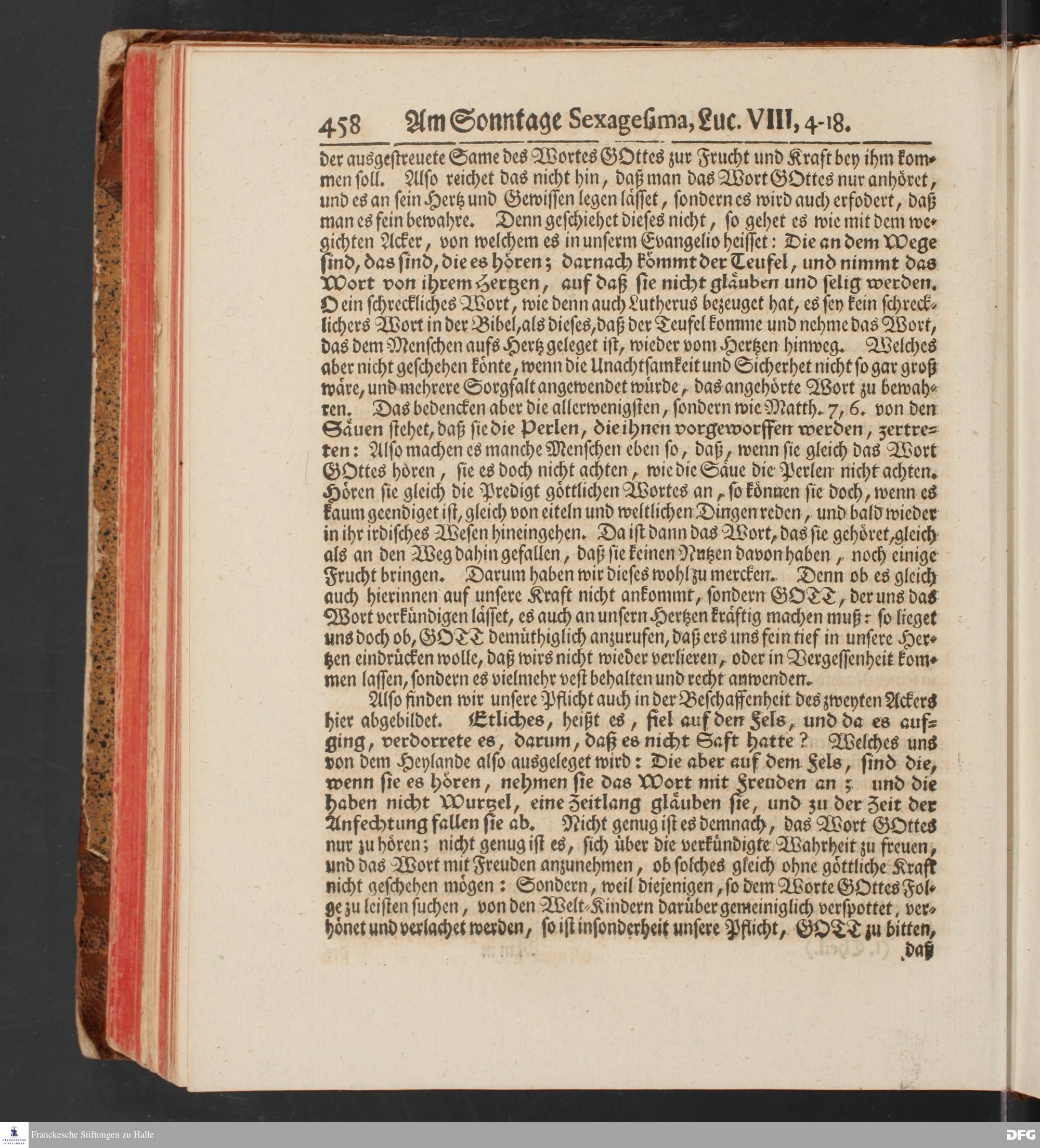 August Hermann Franckens, S.Theol.Prof.und Past. Sonn= und Fest=Tags=Predigten / Welche Theils in Halle, theils an verschiedenen auswärtigen Oertern, von wichtigen und auserlesenen Materien gehalten worden, Nebst Vorbereitung auf die hohen Feste und nützlichen Registern. Dritte Auflage. HALLE, gedruckt und verlegt im Wäysen=Hause MDCCXL. Mit Königl.Preuß.und Churfl.Brandenb.Privileg.