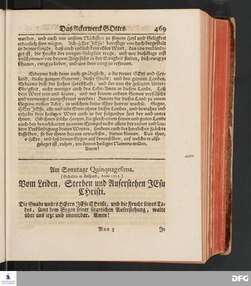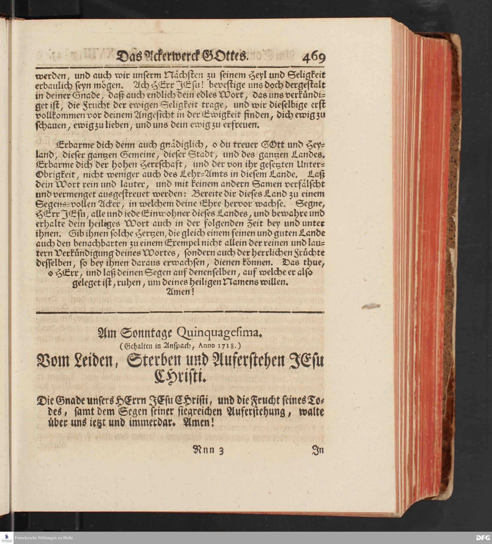 August Hermann Franckens, S.Theol.Prof.und Past. Sonn= und Fest=Tags=Predigten / Welche Theils in Halle, theils an verschiedenen auswärtigen Oertern, von wichtigen und auserlesenen Materien gehalten worden, Nebst Vorbereitung auf die hohen Feste und nützlichen Registern. Dritte Auflage. HALLE, gedruckt und verlegt im Wäysen=Hause MDCCXL. Mit Königl.Preuß.und Churfl.Brandenb.Privileg.