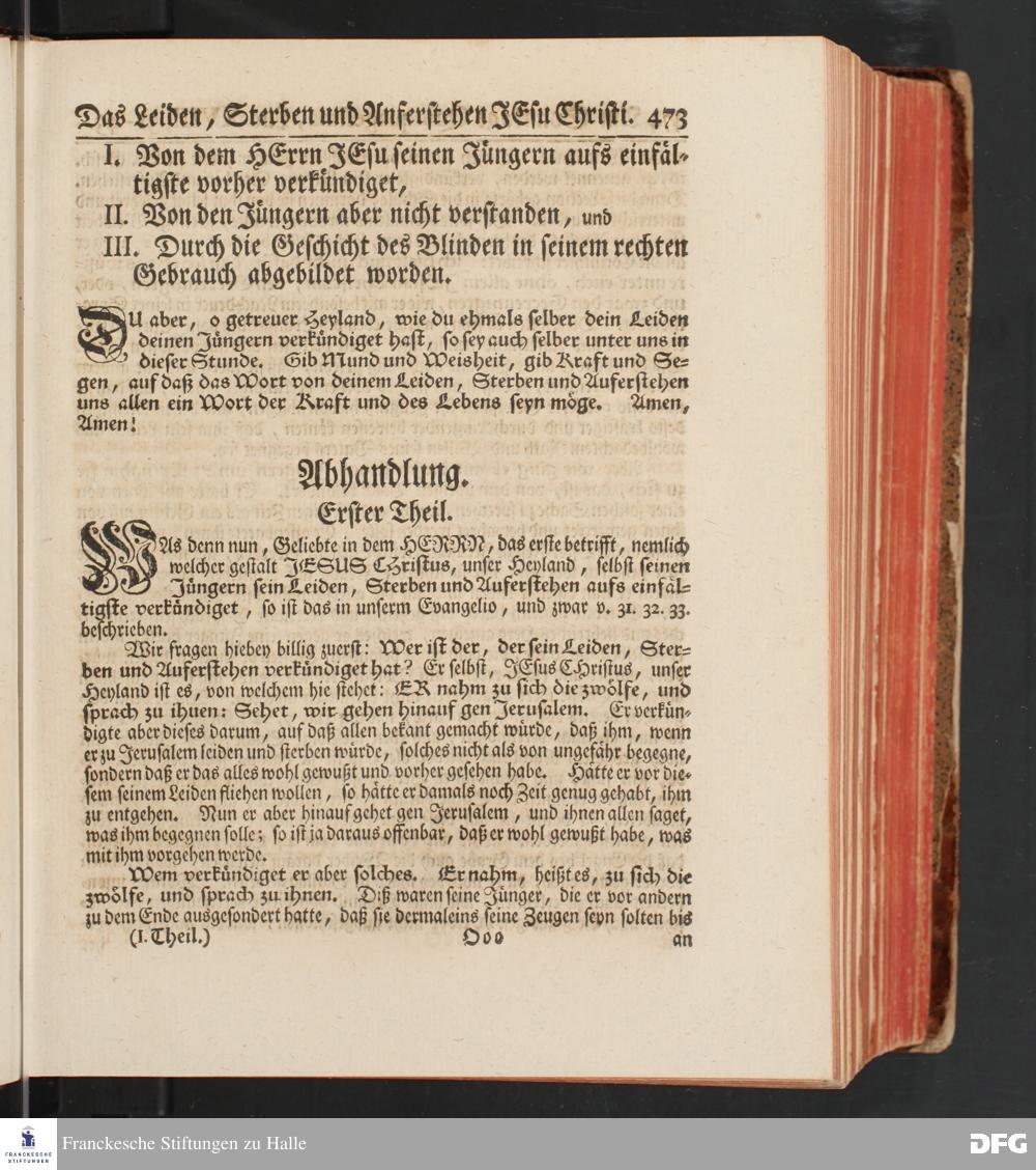 August Hermann Franckens, S.Theol.Prof.und Past. Sonn= und Fest=Tags=Predigten / Welche Theils in Halle, theils an verschiedenen auswärtigen Oertern, von wichtigen und auserlesenen Materien gehalten worden, Nebst Vorbereitung auf die hohen Feste und nützlichen Registern. Dritte Auflage. HALLE, gedruckt und verlegt im Wäysen=Hause MDCCXL. Mit Königl.Preuß.und Churfl.Brandenb.Privileg.