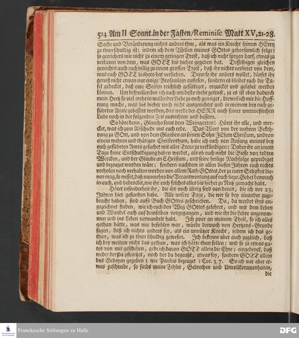 August Hermann Franckens, S.Theol.Prof.und Past. Sonn= und Fest=Tags=Predigten / Welche Theils in Halle, theils an verschiedenen auswärtigen Oertern, von wichtigen und auserlesenen Materien gehalten worden, Nebst Vorbereitung auf die hohen Feste und nützlichen Registern. Dritte Auflage. HALLE, gedruckt und verlegt im Wäysen=Hause MDCCXL. Mit Königl.Preuß.und Churfl.Brandenb.Privileg.