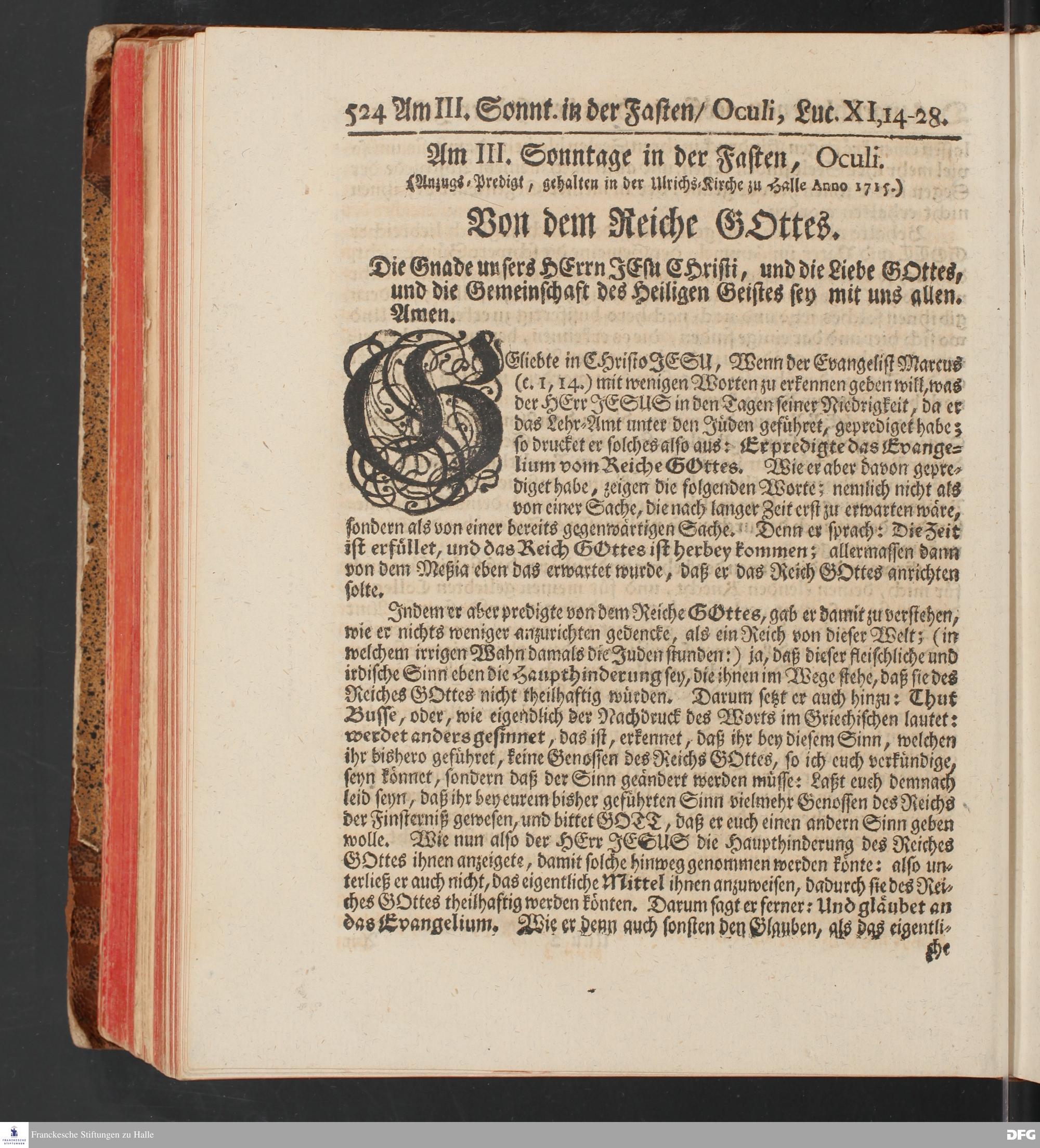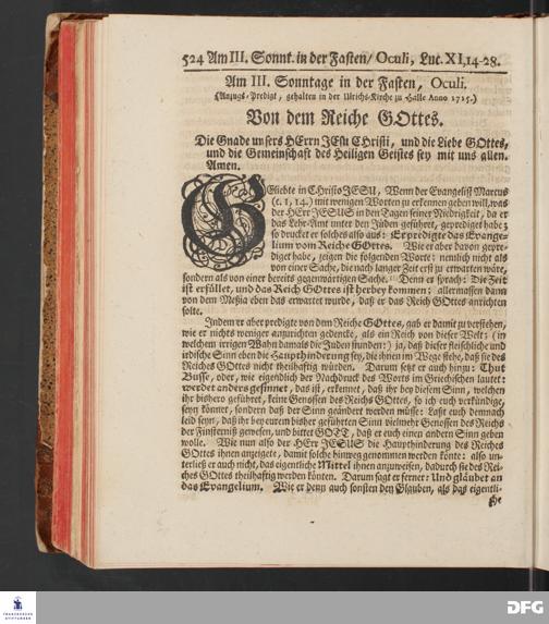 August Hermann Franckens, S.Theol.Prof.und Past. Sonn= und Fest=Tags=Predigten / Welche Theils in Halle, theils an verschiedenen auswärtigen Oertern, von wichtigen und auserlesenen Materien gehalten worden, Nebst Vorbereitung auf die hohen Feste und nützlichen Registern. Dritte Auflage. HALLE, gedruckt und verlegt im Wäysen=Hause MDCCXL. Mit Königl.Preuß.und Churfl.Brandenb.Privileg.