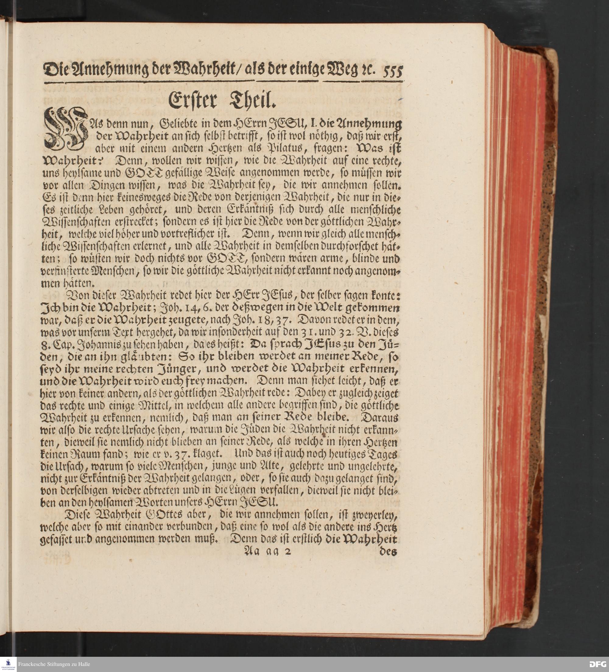 August Hermann Franckens, S.Theol.Prof.und Past. Sonn= und Fest=Tags=Predigten / Welche Theils in Halle, theils an verschiedenen auswärtigen Oertern, von wichtigen und auserlesenen Materien gehalten worden, Nebst Vorbereitung auf die hohen Feste und nützlichen Registern. Dritte Auflage. HALLE, gedruckt und verlegt im Wäysen=Hause MDCCXL. Mit Königl.Preuß.und Churfl.Brandenb.Privileg.