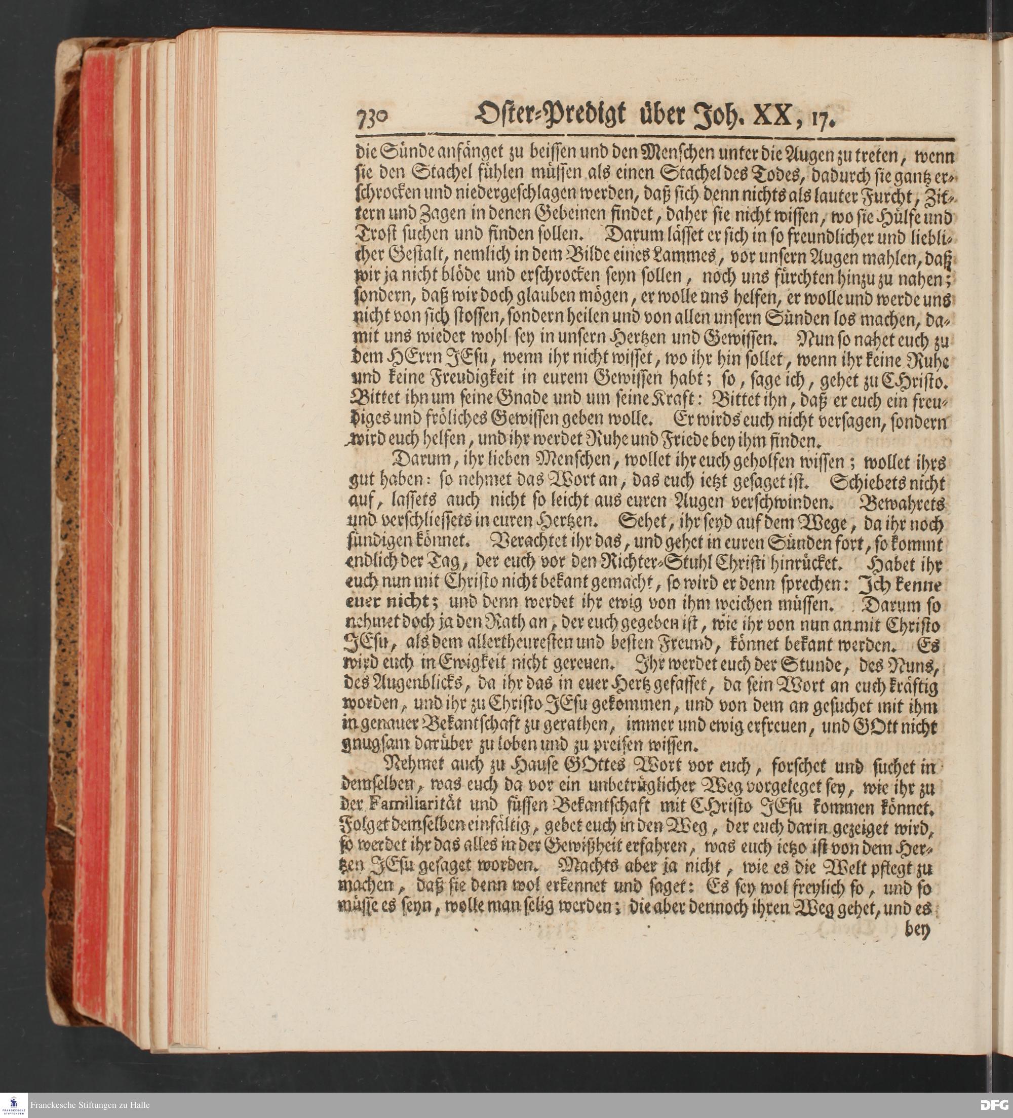August Hermann Franckens, S.Theol.Prof.und Past. Sonn= und Fest=Tags=Predigten / Welche Theils in Halle, theils an verschiedenen auswärtigen Oertern, von wichtigen und auserlesenen Materien gehalten worden, Nebst Vorbereitung auf die hohen Feste und nützlichen Registern. Dritte Auflage. HALLE, gedruckt und verlegt im Wäysen=Hause MDCCXL. Mit Königl.Preuß.und Churfl.Brandenb.Privileg.