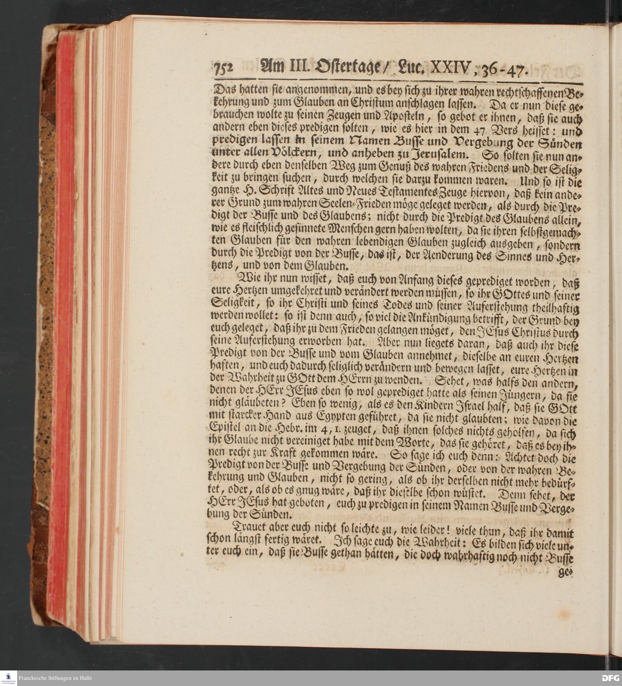 August Hermann Franckens, S.Theol.Prof.und Past. Sonn= und Fest=Tags=Predigten / Welche Theils in Halle, theils an verschiedenen auswärtigen Oertern, von wichtigen und auserlesenen Materien gehalten worden, Nebst Vorbereitung auf die hohen Feste und nützlichen Registern. Dritte Auflage. HALLE, gedruckt und verlegt im Wäysen=Hause MDCCXL. Mit Königl.Preuß.und Churfl.Brandenb.Privileg.