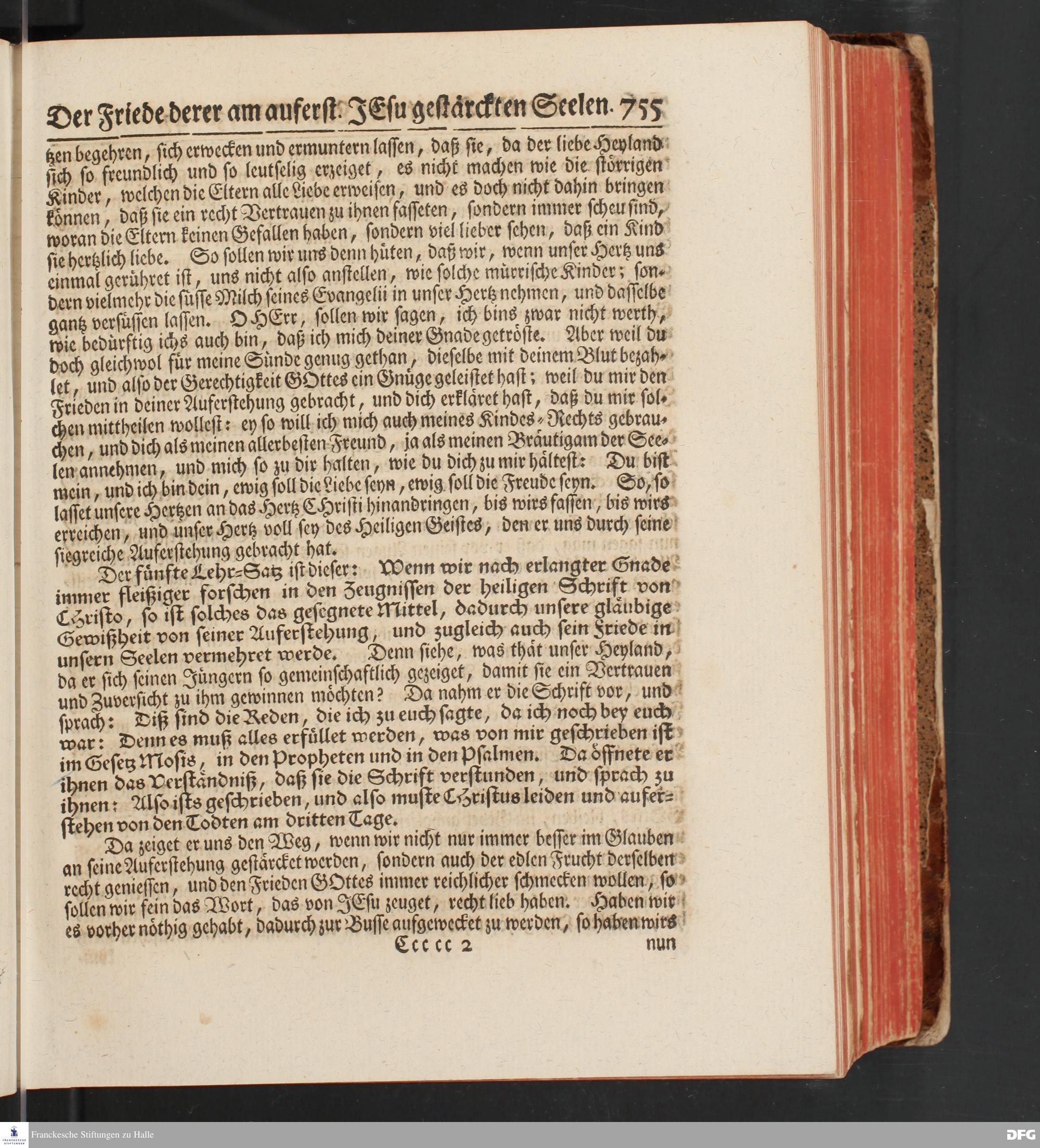 August Hermann Franckens, S.Theol.Prof.und Past. Sonn= und Fest=Tags=Predigten / Welche Theils in Halle, theils an verschiedenen auswärtigen Oertern, von wichtigen und auserlesenen Materien gehalten worden, Nebst Vorbereitung auf die hohen Feste und nützlichen Registern. Dritte Auflage. HALLE, gedruckt und verlegt im Wäysen=Hause MDCCXL. Mit Königl.Preuß.und Churfl.Brandenb.Privileg.