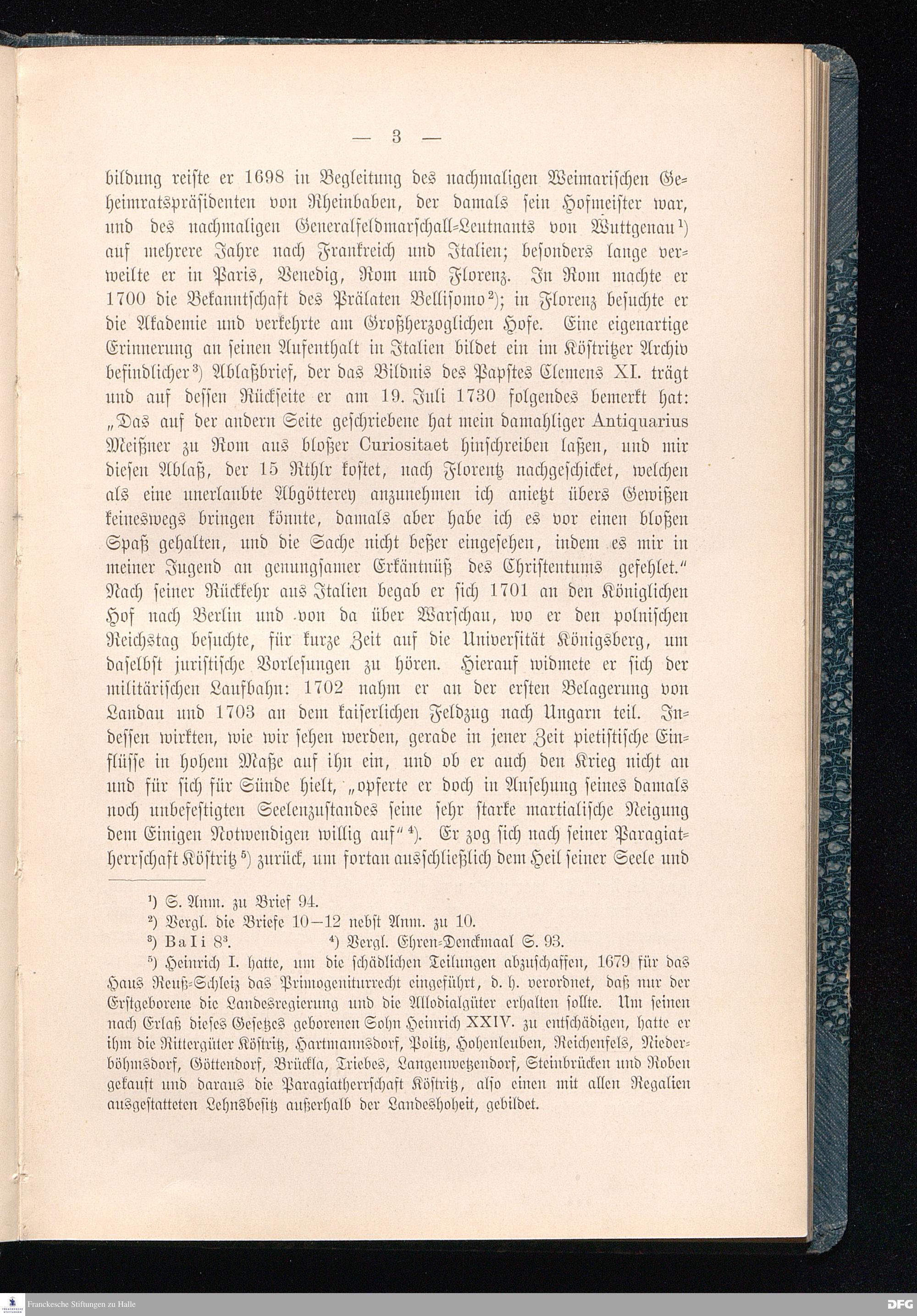 A.H.Franckes Briefe an den Grafen Heinrich XXIV. j.L. Reuß zu Köstritz und seine Gemahlin Eleonore aus den Jahren 1704 bis 1727 als Beitrag zur Geschichte des Pietismus herausgegeben von Dr.Berthold Schmidt Fürstl.Reuß j.L.Archivrat und Lic.theol. Otto Meusel Gymnasialoberlehrer in Schleiz. Leipzig, Verlag der Dürr'schen Buchhandlung 1905.