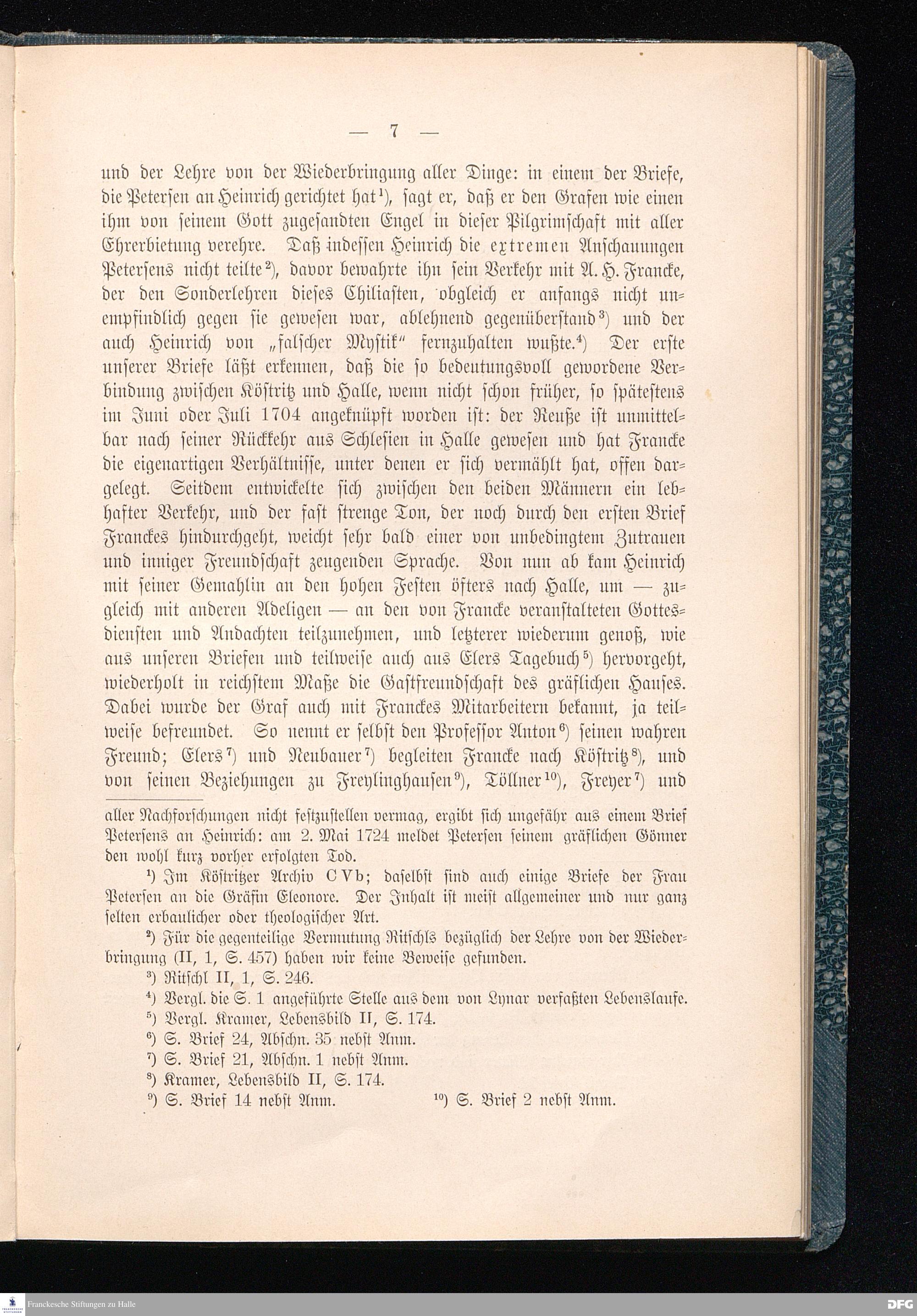 A.H.Franckes Briefe an den Grafen Heinrich XXIV. j.L. Reuß zu Köstritz und seine Gemahlin Eleonore aus den Jahren 1704 bis 1727 als Beitrag zur Geschichte des Pietismus herausgegeben von Dr.Berthold Schmidt Fürstl.Reuß j.L.Archivrat und Lic.theol. Otto Meusel Gymnasialoberlehrer in Schleiz. Leipzig, Verlag der Dürr'schen Buchhandlung 1905.
