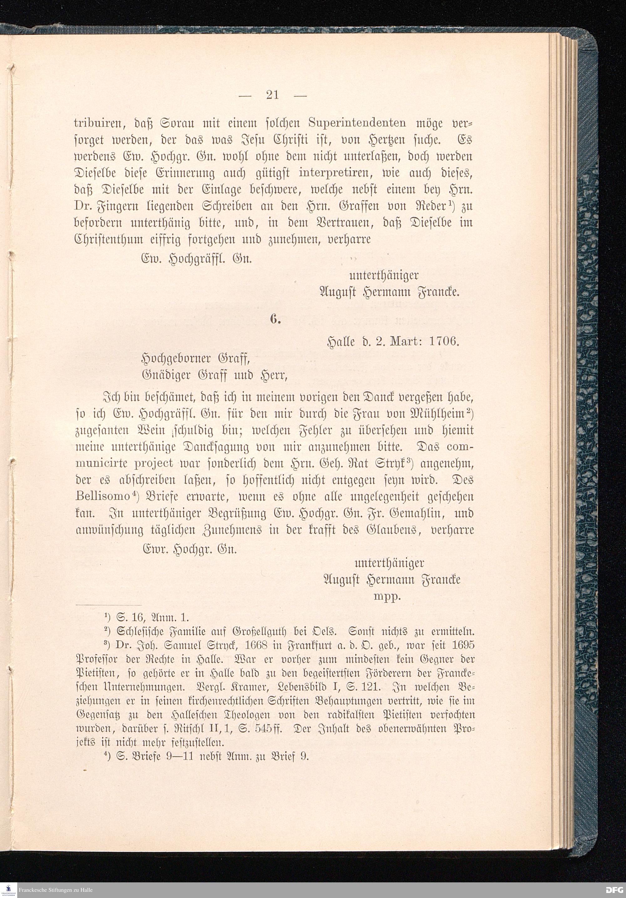 A.H.Franckes Briefe an den Grafen Heinrich XXIV. j.L. Reuß zu Köstritz und seine Gemahlin Eleonore aus den Jahren 1704 bis 1727 als Beitrag zur Geschichte des Pietismus herausgegeben von Dr.Berthold Schmidt Fürstl.Reuß j.L.Archivrat und Lic.theol. Otto Meusel Gymnasialoberlehrer in Schleiz. Leipzig, Verlag der Dürr'schen Buchhandlung 1905.