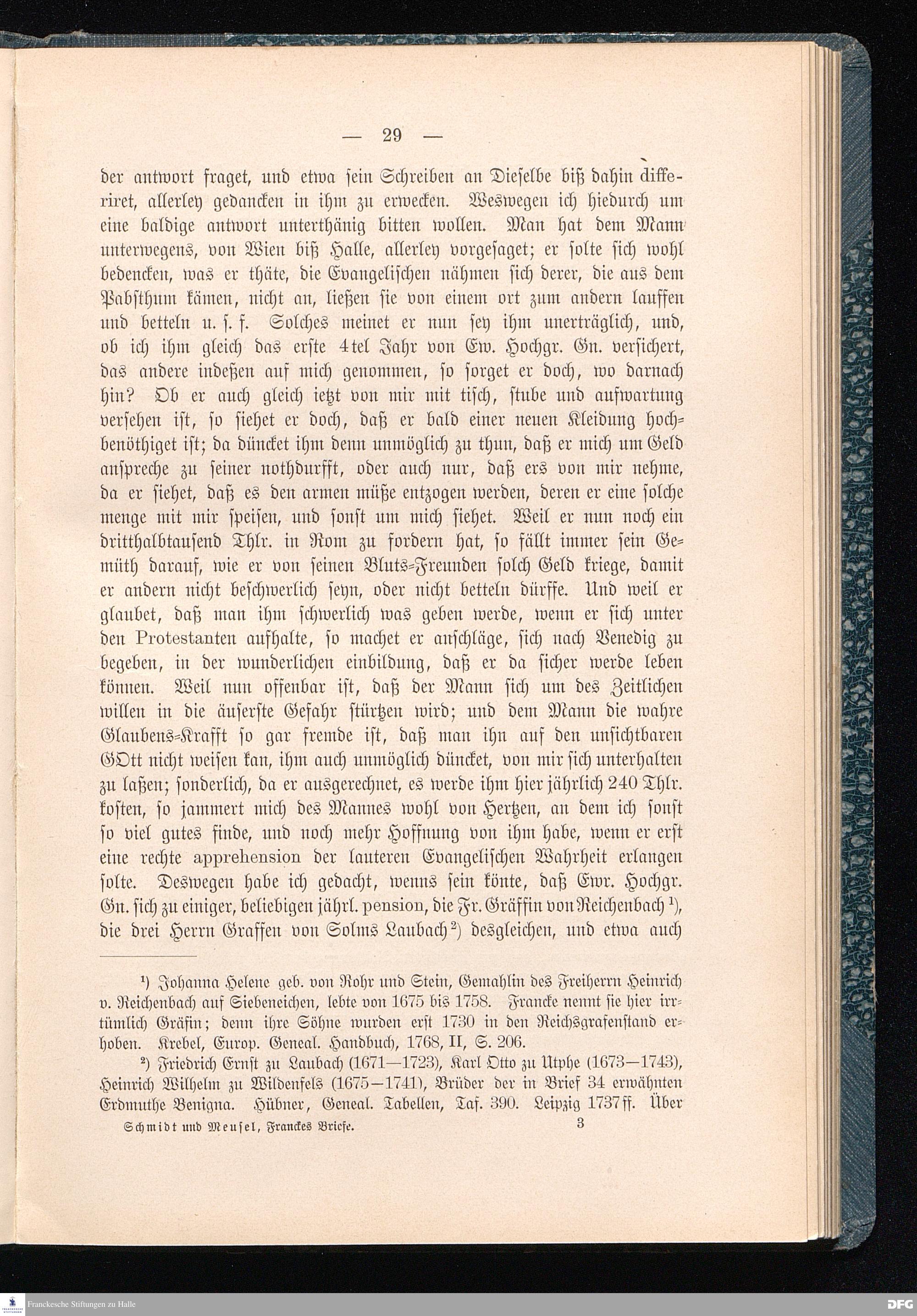 A.H.Franckes Briefe an den Grafen Heinrich XXIV. j.L. Reuß zu Köstritz und seine Gemahlin Eleonore aus den Jahren 1704 bis 1727 als Beitrag zur Geschichte des Pietismus herausgegeben von Dr.Berthold Schmidt Fürstl.Reuß j.L.Archivrat und Lic.theol. Otto Meusel Gymnasialoberlehrer in Schleiz. Leipzig, Verlag der Dürr'schen Buchhandlung 1905.