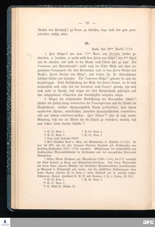 A.H.Franckes Briefe an den Grafen Heinrich XXIV. j.L. Reuß zu Köstritz und seine Gemahlin Eleonore aus den Jahren 1704 bis 1727 als Beitrag zur Geschichte des Pietismus herausgegeben von Dr.Berthold Schmidt Fürstl.Reuß j.L.Archivrat und Lic.theol. Otto Meusel Gymnasialoberlehrer in Schleiz. Leipzig, Verlag der Dürr'schen Buchhandlung 1905.